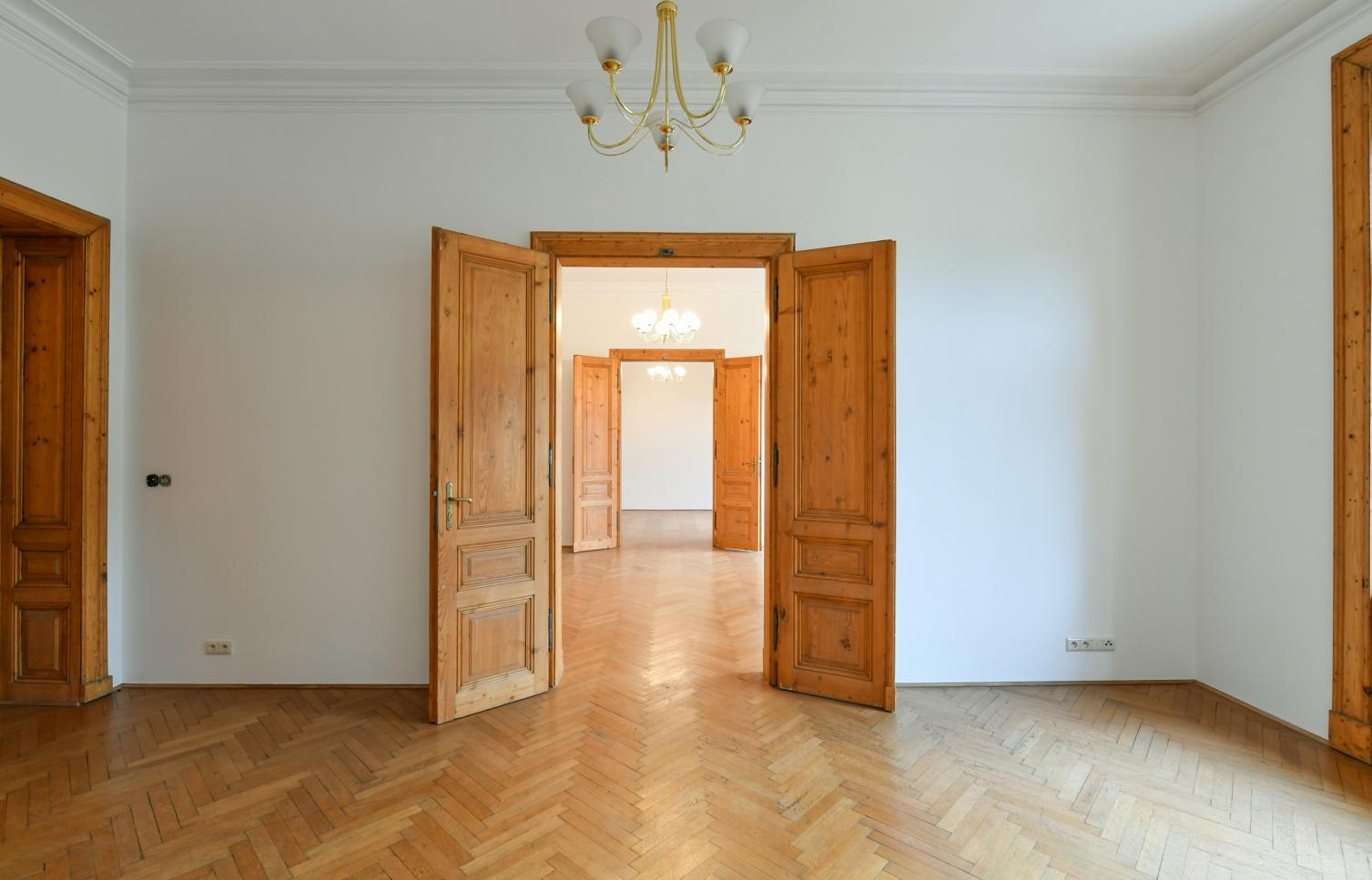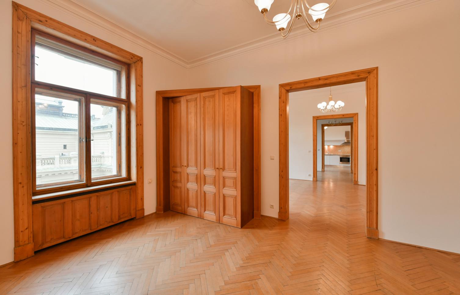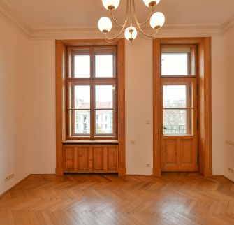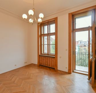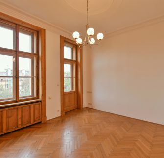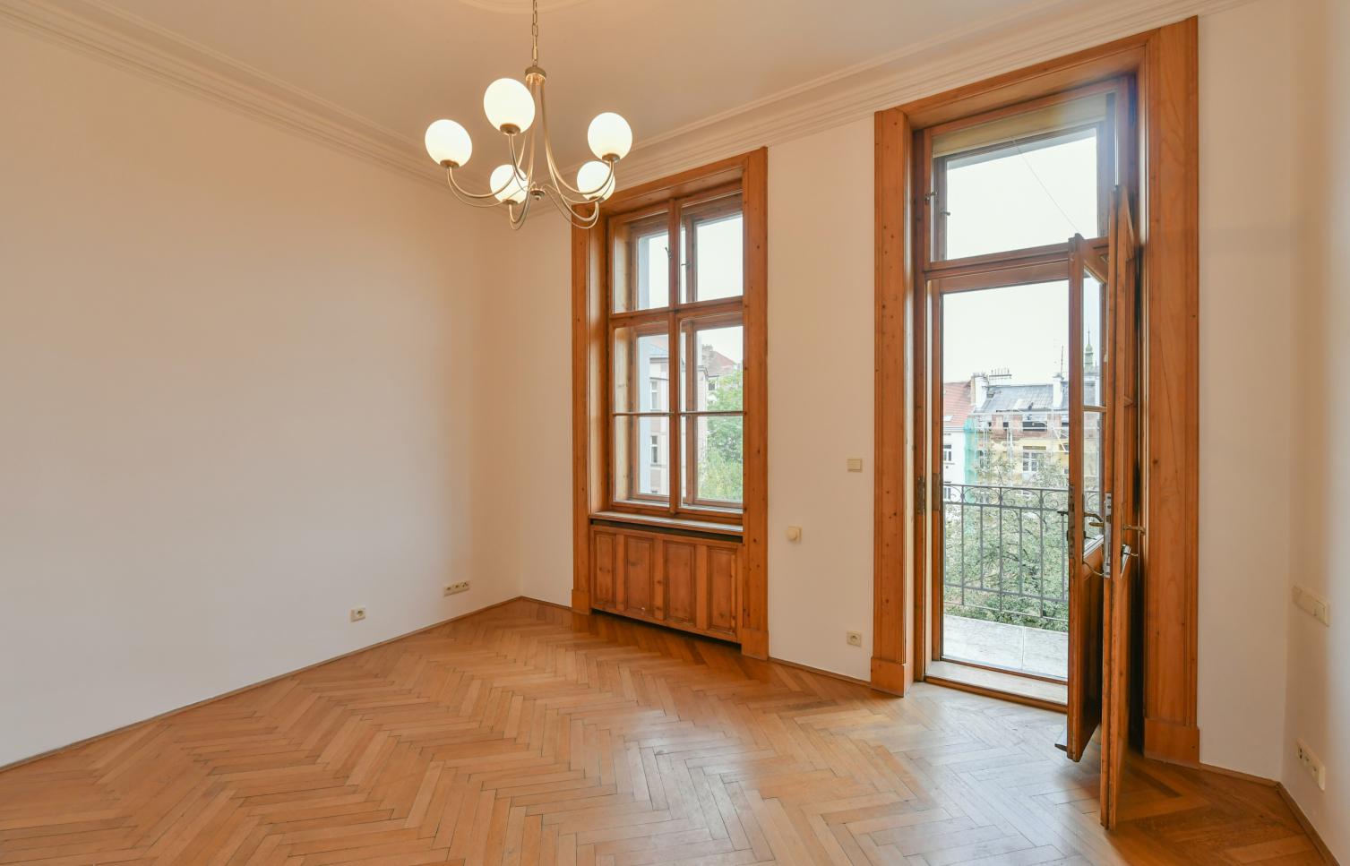 Elegantní stylově částečně zařízený byt situovaný ve 4 patře kompletně zrekonstruované neoklasicistní budovy, v exkluzivní rezidenční čtvrti Královské Vinohrady. Citlivě zrenovovaná budova z 19. století skrývá rozlehlé exkluzívní byty v klasickém stylu s restaurovanými detaily původní výzdoby. Prvotřídní a pečlivá rekonstrukce, která byla dokončena v roce 2006, vrátila domu jeho originální historickou identitu, a to v každém detailu. Oblíbená rezidenční lokalita, přímo u Nám. Míru, pár kroků od zastávek tramvají a stanice metra. zajistí svým obyvatelům veškerý komfort moderního bydlení nejvyšší kvality: vyhlášené restaurace, bistra, pekárny, farmářské trhy na Nám. Jiřího z Poděbrad, kavárny, supermarkety, OC Flora.
