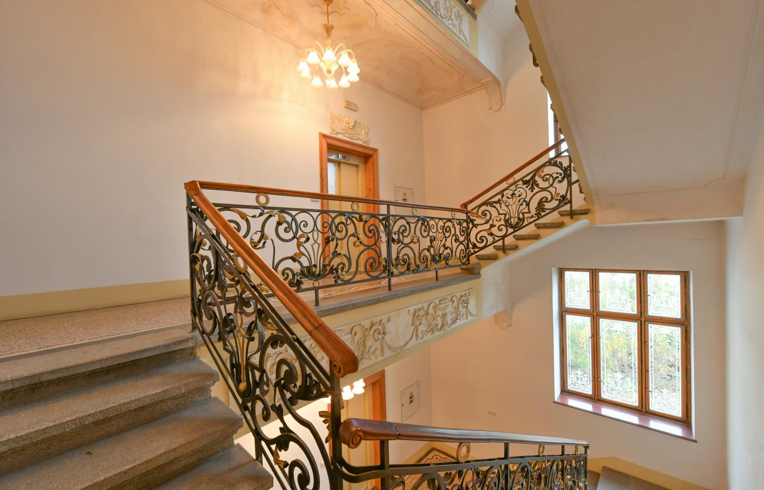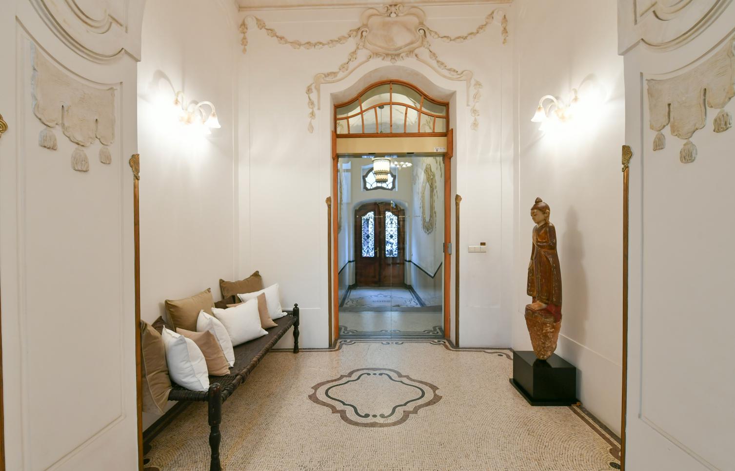 Původní architektonické prvky, obývací pokoj arkýře, parkety, dlažba, mramorem obložené koupelny, parketové podlahy, pračka, sušička, videotelefon, satelitní příjem a internetové připojení. Záloha: služby a spotřebu energií 12.000 Kč / měsíc.