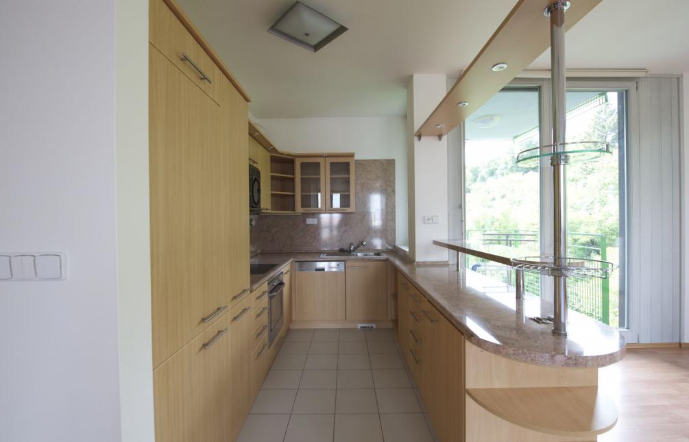 Dominantou bytu je otevřený obývací pokoj s plně vybavenou kuchyní, jídelnou, velkorysý obytný prostor dále nabízí 4 ložnice, 2 koupelny, prádelnu a vstupní halu. Výhodou jsou 3 terasy s výhledem do zeleně, centrální vysavač, alarm, UPC, kabel. domácí kino. Bezpečné parkování v podzemní garáži, sklep.