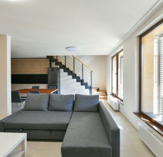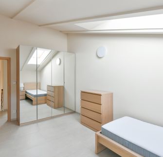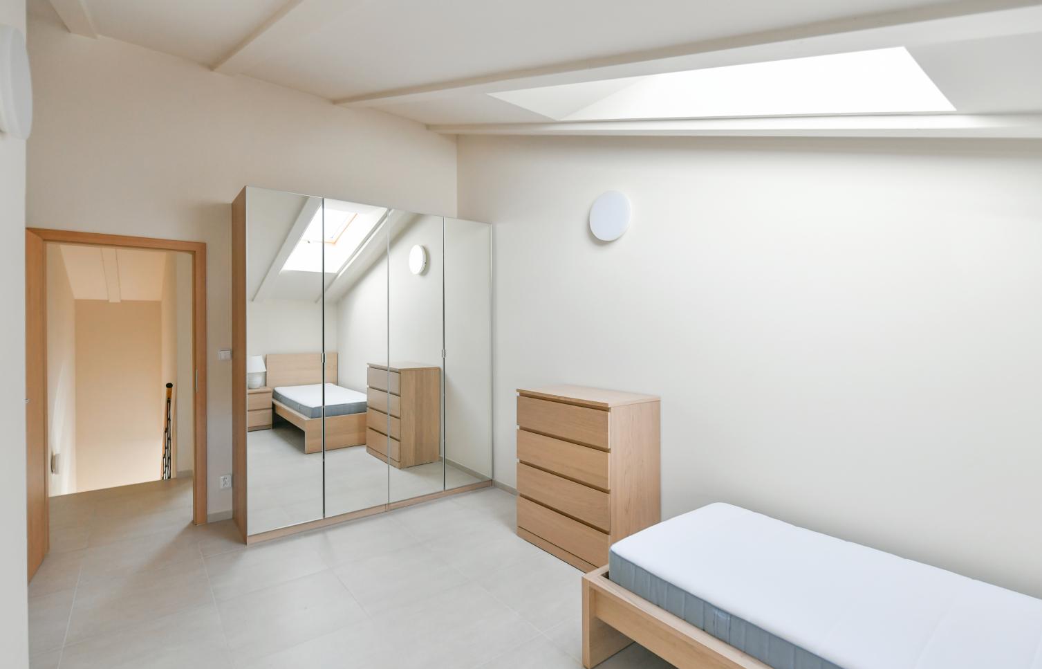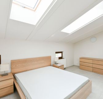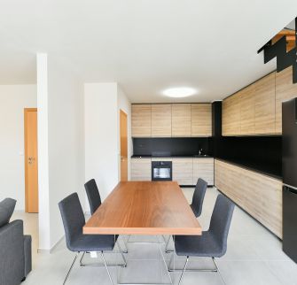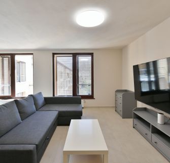 Dispozice: V předsíni je vestavná zrcadlová skříň s velkým úložným prostorem. V hlavní místnosti se nachází velká moderní postel, luxusní komoda a sedací souprava. K dispozici kávovar, televizor a trezor. V pohádkové koupelně je nainstalovaná perličková vana, WC, bidet a umyvadlo se zrcadlem. Výměra – celkem má byt 120 m2. Celý byt je klimatizován.