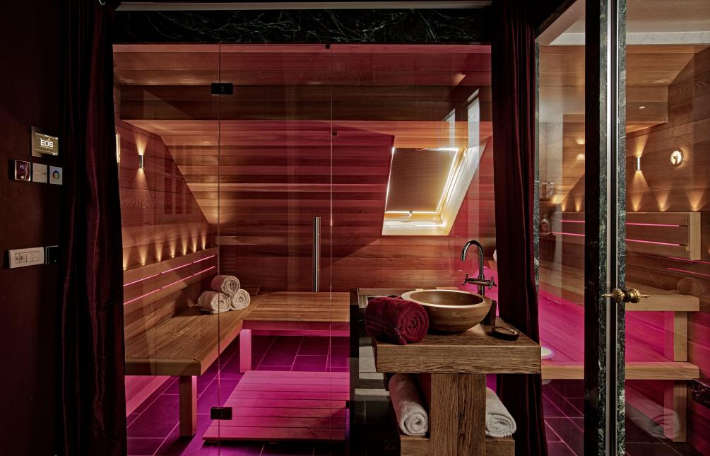 Vnitřní dispozice bytu tvoří obývací pokoj členěný na několik komfortních zákoutí, čtyři ložnice, pracovna, tři koupelny, 5 toalet, šatna, plně vybavena kuchyně včetně profesionálních spotřebičů. Byt je možné rozdělit na dvě části, kde ve spodní části je prostorný obytný prostor s jídelní částí a kuchyní, jedna ložnice s pracovnou a odpočinkovou místností, velkorysá koupelna s toaletou. Ve druhé části bytu v dalším patře jsou pak ostatní prostory (další ložnice, koupelny, sauna, pára atd). Byt je ideální pro opravdu VIP klienty, kteří mohou mít naprosté soukromí ve spodní patře a v horním patře mohou mít asistenta, chůvu s dětmi atd. Terasa s výhledem na řeku vybízí ke klidnému posezení u odpolední kávy či u večerního drinku.