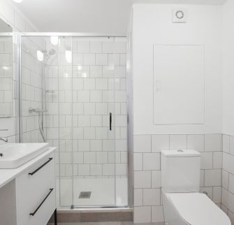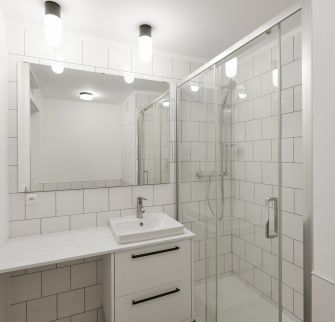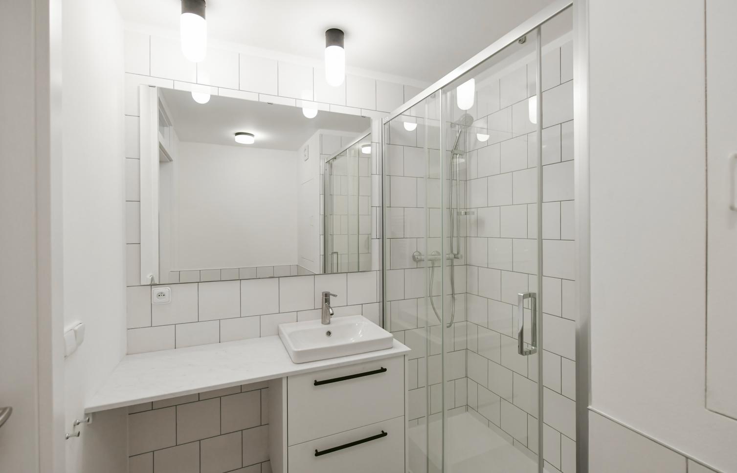 Koupelna se sprchou a toaletou.
