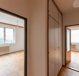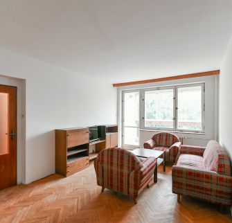 Byt je vhodný k rekonstrukci. Vytápění domu je centrální, měřáky na teplo na litinových radiátorech, vodoměry.