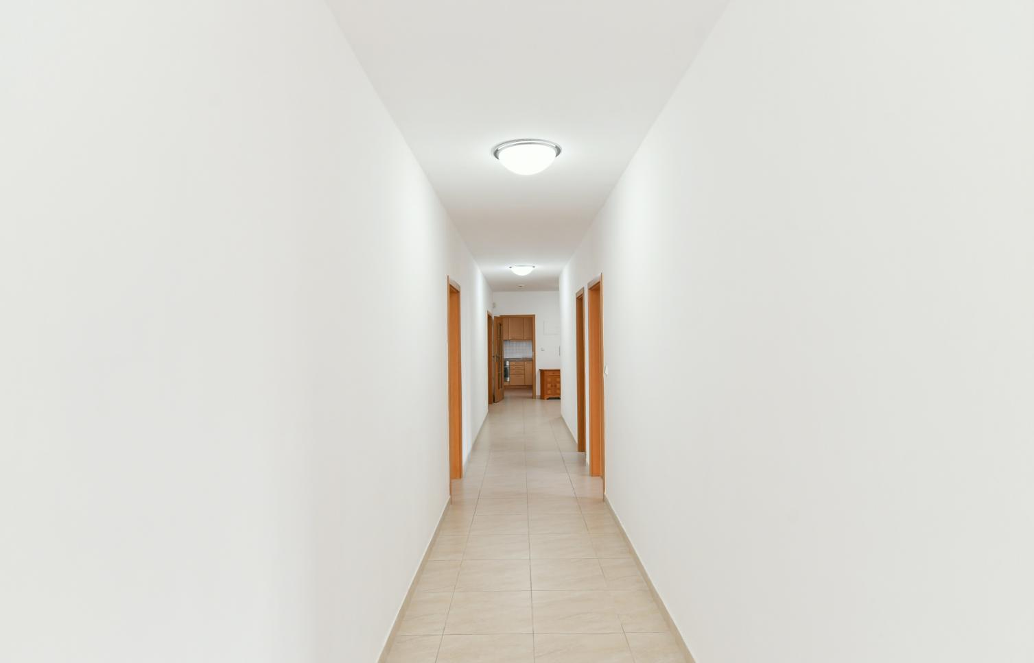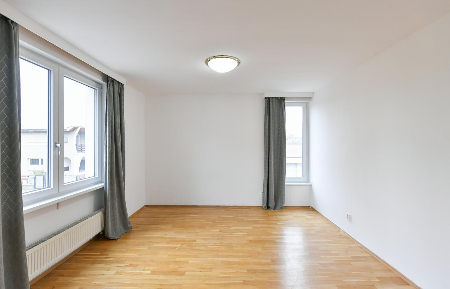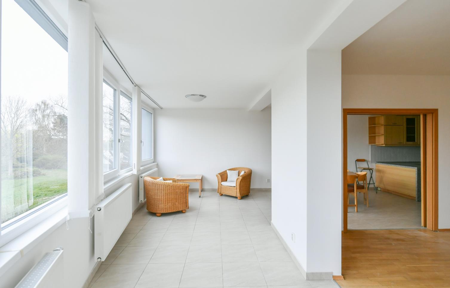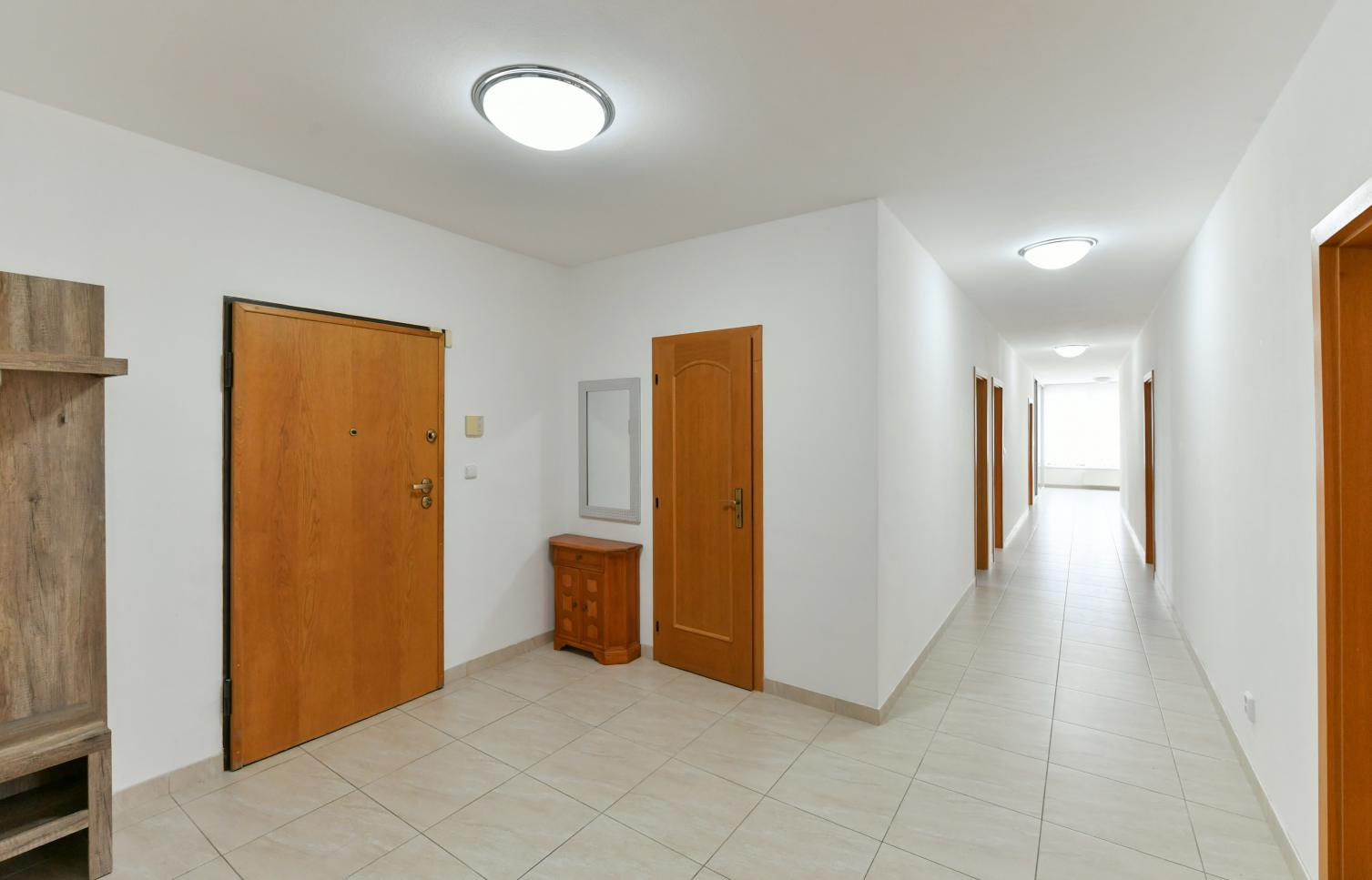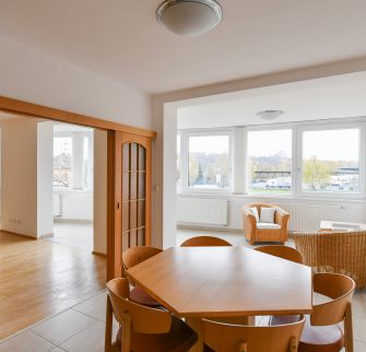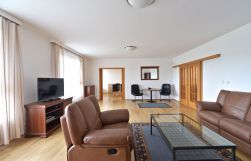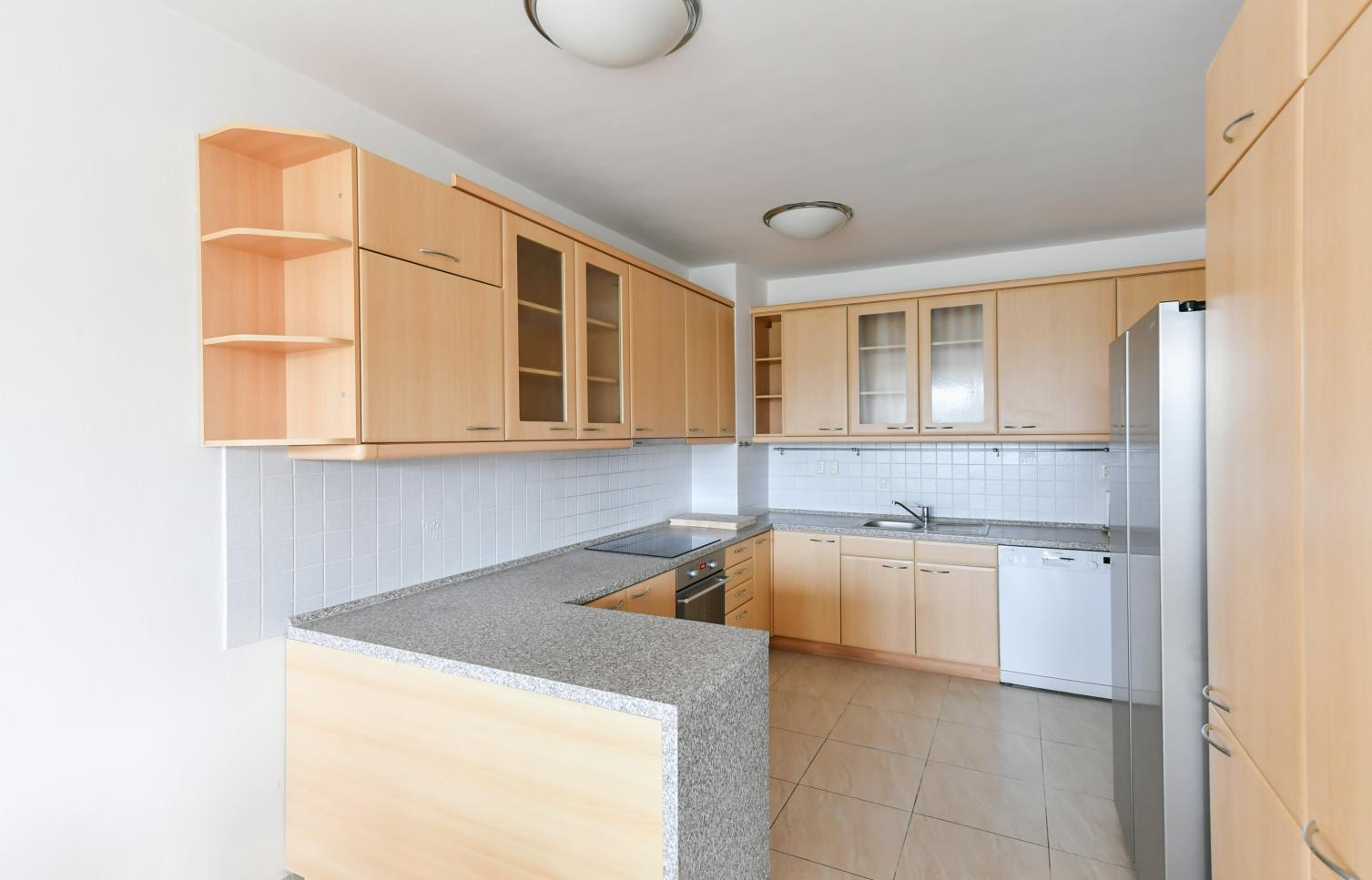 Dispozice bytu: tři ložnice, obývací pokoj, plně zařízená kuchyně, jídelna, dvě koupelny. Bezpečnostní vstupní dveře, videotelefon, alarm, 24 hodin bezpečnostní služba. Bezpečné parkování, parkovací místo možno v garáži za příplatek.