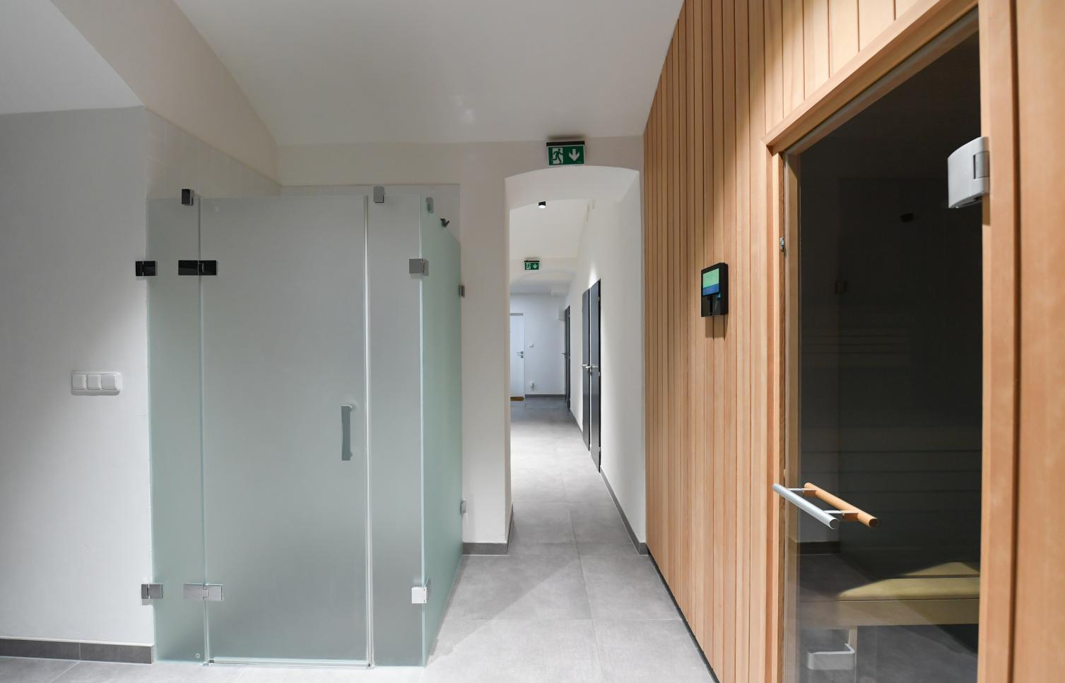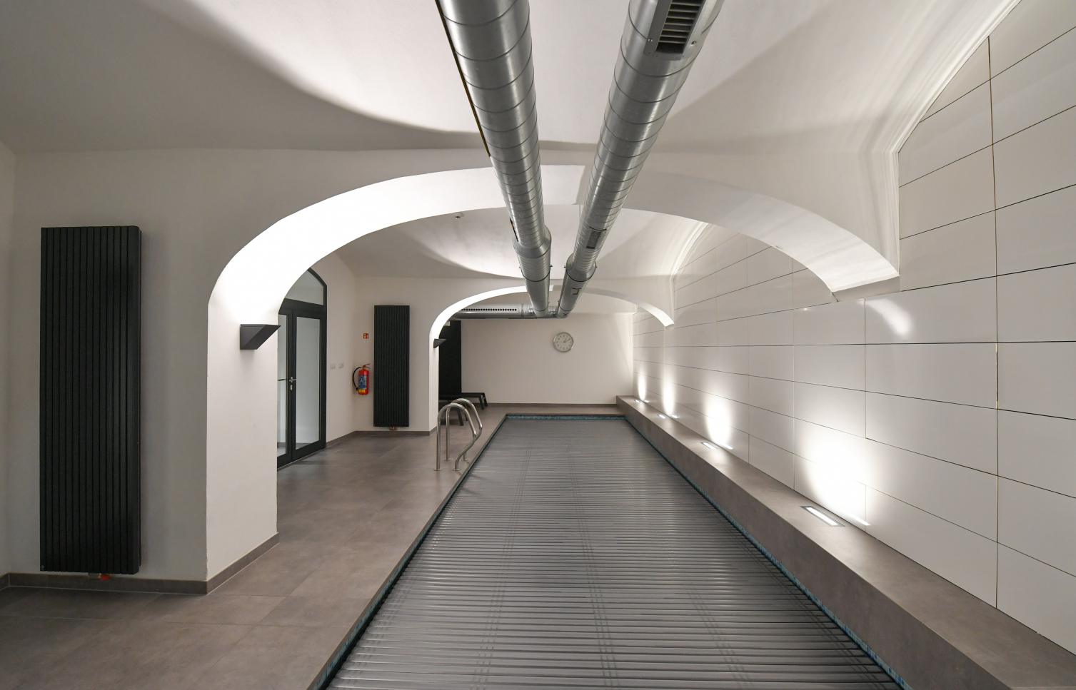 Masivní dubové podlahy ve všech místnostech, klimatizace, vyhřívaná dlažba v koupelnách, bezpečnostní vstupní dveře, kuchyně zařízena všemi potřebnými spotřebiči, vestavěné skříně v jedné ložnici, indukční varná deska, rolety, video-kamery (vstup/parkování), nabíjecí stanice pro elektromobily v garáži, sklepní kóje pro uskladnění všeho nezbytného. Možnost pronájmu garážového stání za 10.000 Kč měsíčně + DPH. Elektřina dle spotřeby se přepisuje na nájemce.