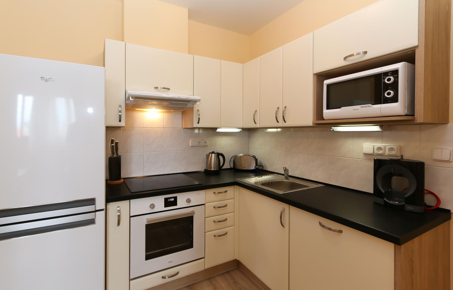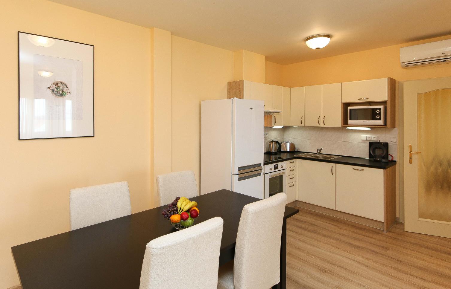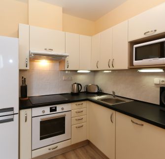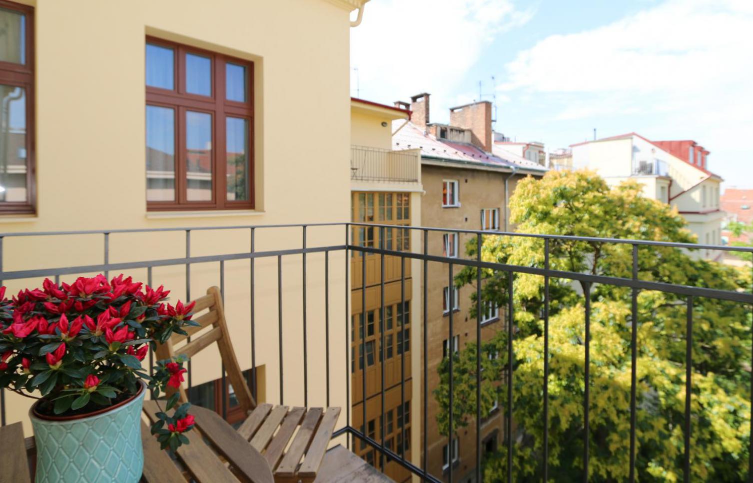Komfortně zařízený byt v mezipatře kompletně zrenovovaného činžovního domu s výtahem. Dům se nachází v klidné ulici, v horní části Vinohrad, pár minut pěší chůze od Náměstí Míru se stanicí metra. Pražské Vinohrady, jedna z nejprestižnějších pražských čtvrti s rezidenčním bydlením nabízejí pestrou paletu životního stylu. Výběrové restaurace, bary, kavárny, obchody, divadla, malebné parky s vyhlídkami jsou prakticky „za rohem.“