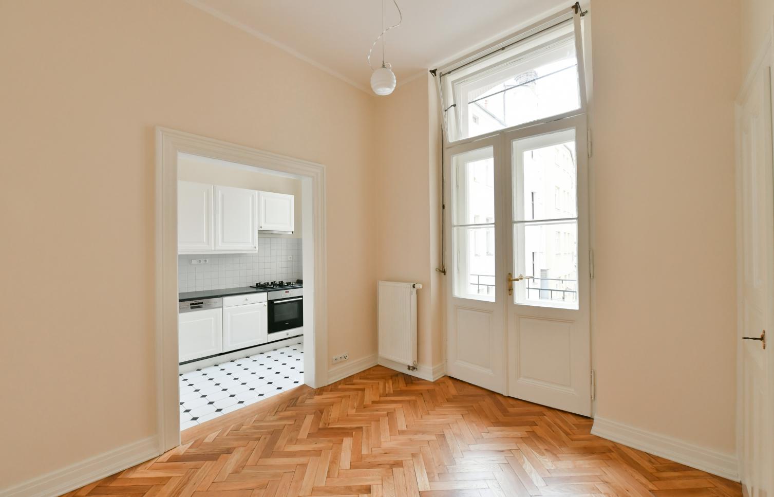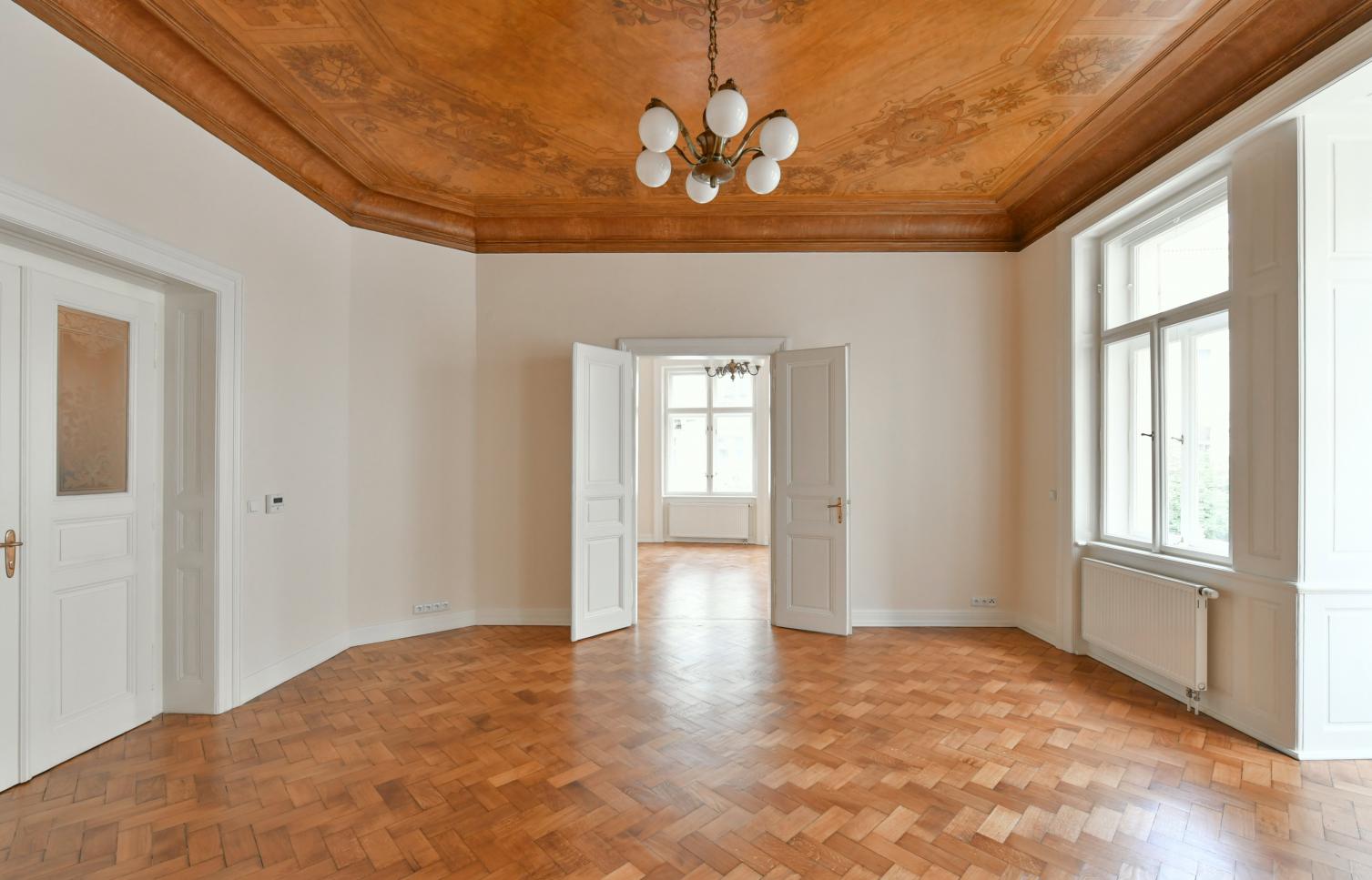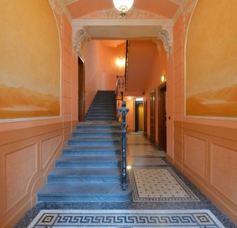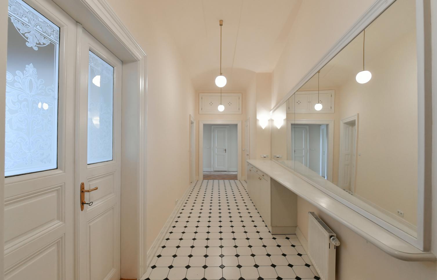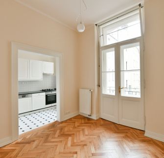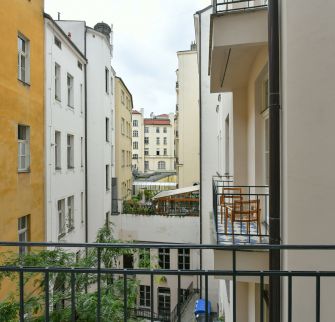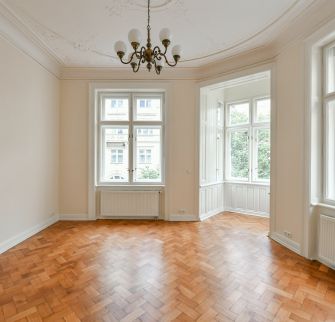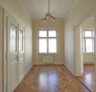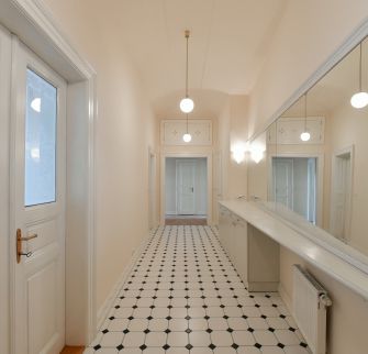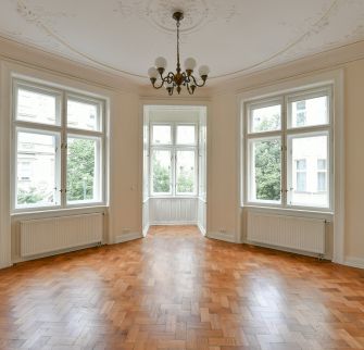 Byt 5+1 o velikosti 151 m2 se dvěma balkony je situován ve 3. patře secesní budovy s výtahem. Interiér bytu nabízí prostorný obývací pokoj s arkýřem, 3 ložnice, koupelnu s vanou, toaletou a bidetem, kuchyni s jídelním koutem (vstup na druhý balkon), tech. místnost a vstupní halu.