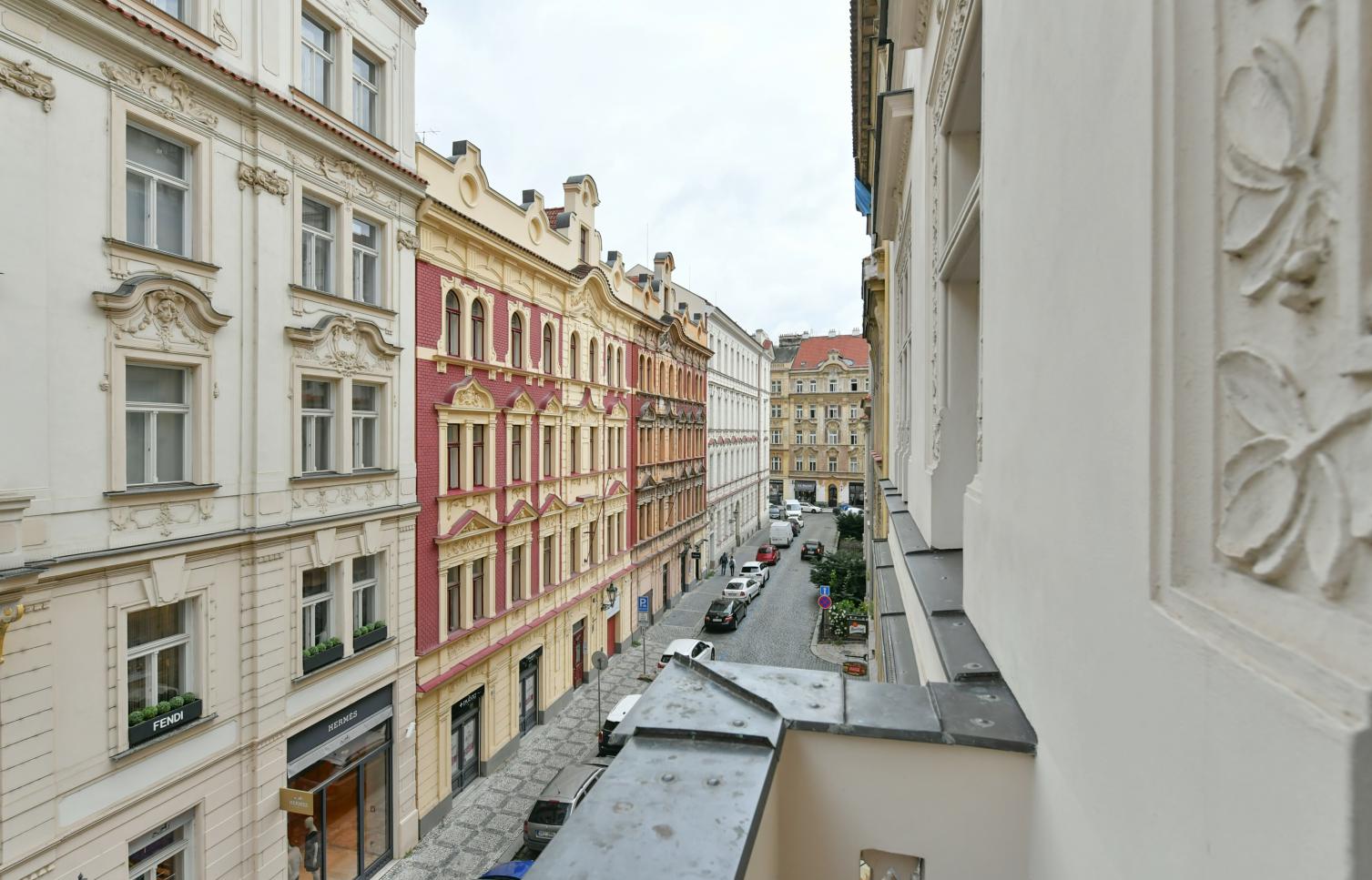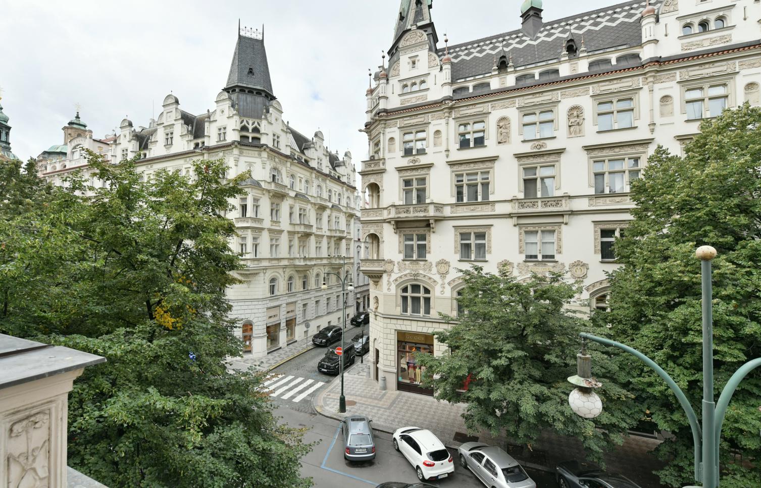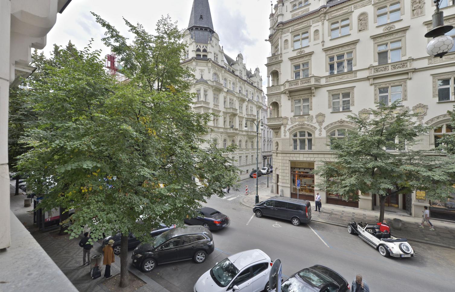 Půvabný, zrekonstruovaný byt se zachovanými původními prvky situovaný na nejluxusnější pražské adrese - Pařížské třídě se spoustou těch nejlepších restaurací, kaváren, barů a butiků světoznámých designérů, pár mimut chůze od Staroměstského náměstí. Navíc blízko světoznámých památek Starého města, jakož i malebných uliček v nejbližším okolí. Lokalita s plnou občanskou vybaveností v bezprostředním okolí a vynikající dostupností veřejnou dopravou. Honosný dům je po kompletní rekonstrukci v roce 2003. Z 11 bytů je 9 klasických s řadou historických štuků a zdobení, fládrovanými secesními stropy, arkýři s výhledem směrem na Staroměstské náměstí i k Vltavě.