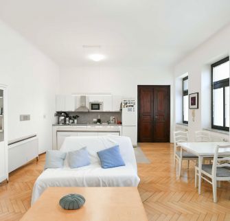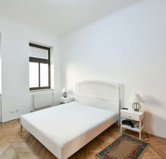 Komfortně zařízený byt situovaný ve 4. NP kompletně zrekonstruované budovy z konce 19. století. Nový výtah a k dispozici bezpečné parkování v domě. Rezidenční budova je vzdálena jen pár minut chůze od Václavského náměstí. Veškerá občanská vybavenost, stanice metra Můstek a Muzeum, trasa A a C.