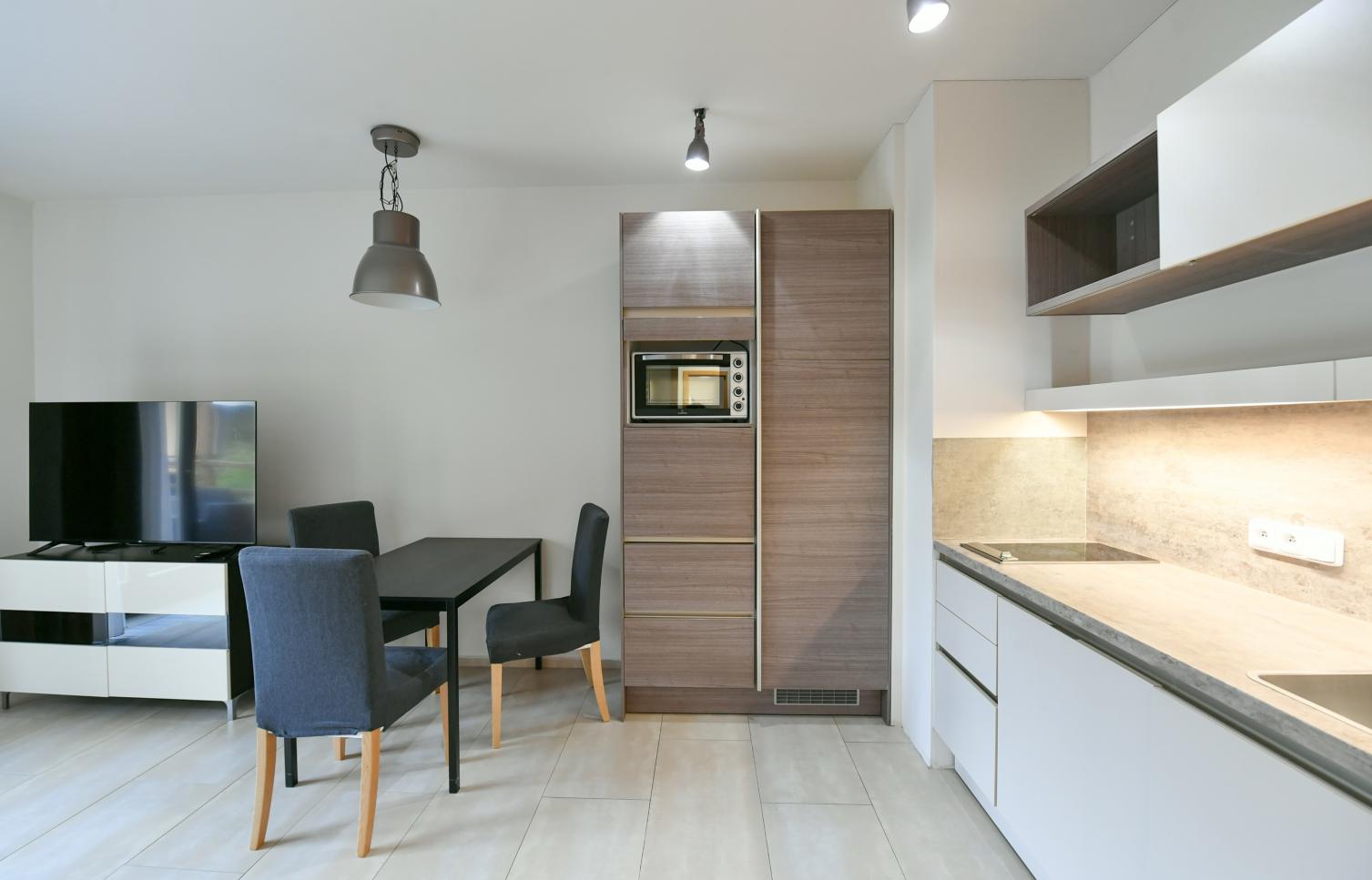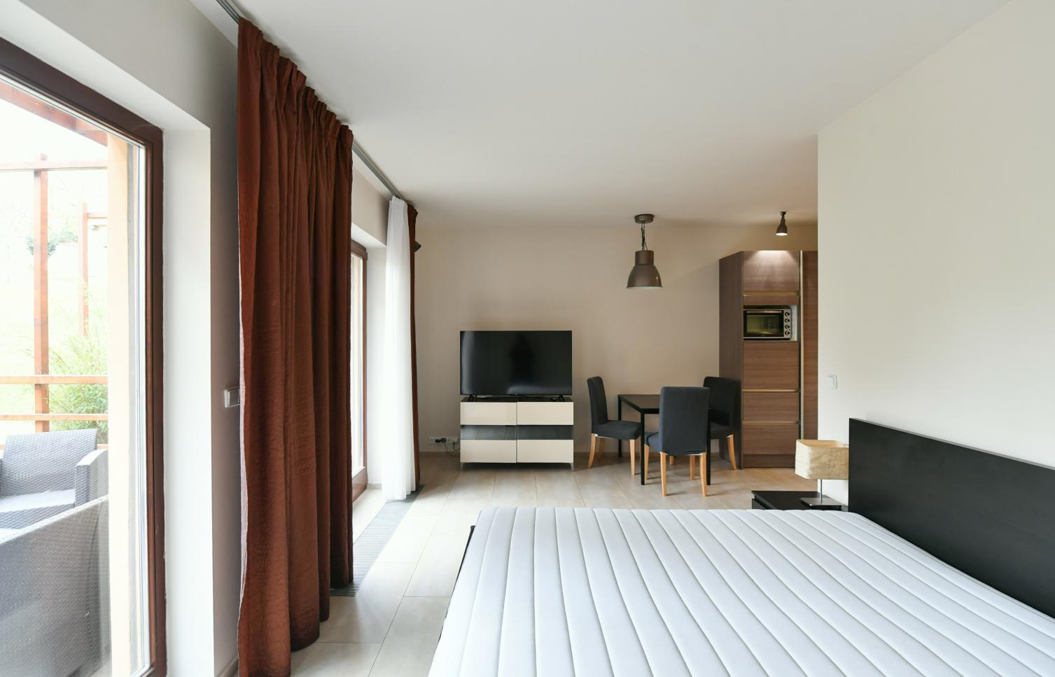Luxusně zařízený byt 1kk v prémiové kvalitě s krásným výhledem do zahrady, situován v 1. patře projektu Císařský mlýn. Rezidenční areál Císařský mlýn se nachází v malebné a romantické části Prahy 6 v těsné blízkosti největšího pražského parku Stromovka. V letech 2005-2009 byla provedena rekonstrukce a dostavba areálu, původně renesanční budovy, a vznikl zde komplex luxusních apartmánů. Součástí budovy je také křížová chodba, která slouží jako společenské zázemí projektu. Uzavřena rezidence s podzemním parkováním, ostrahou a profesionálně upravenou zahradou dnes skvěle naplňuje funkci bydlení pro lidi, kteří mají vztah k historii a oceňují i přírodu blízké královské obory. Tichá lokalita v prestižní diplomatické čtvrti Bubeneč, pár minut chůze k zastávce autobusu k metru Dejvická, v rychlém dosahu letiště a mezinárodních škol v Praze 6. (International School of Prague, Riverside School, Prague British International School). Nespornou výhodou je také snadné napojení na hlavní tah na letiště Václava Havla, kam se lze pohodlně dostat během 15 minut. Příjemné procházky a sportovní aktivity nabízí Stromovka a park Willyho Brandta. Dokonalé útočiště před hektickým světem.