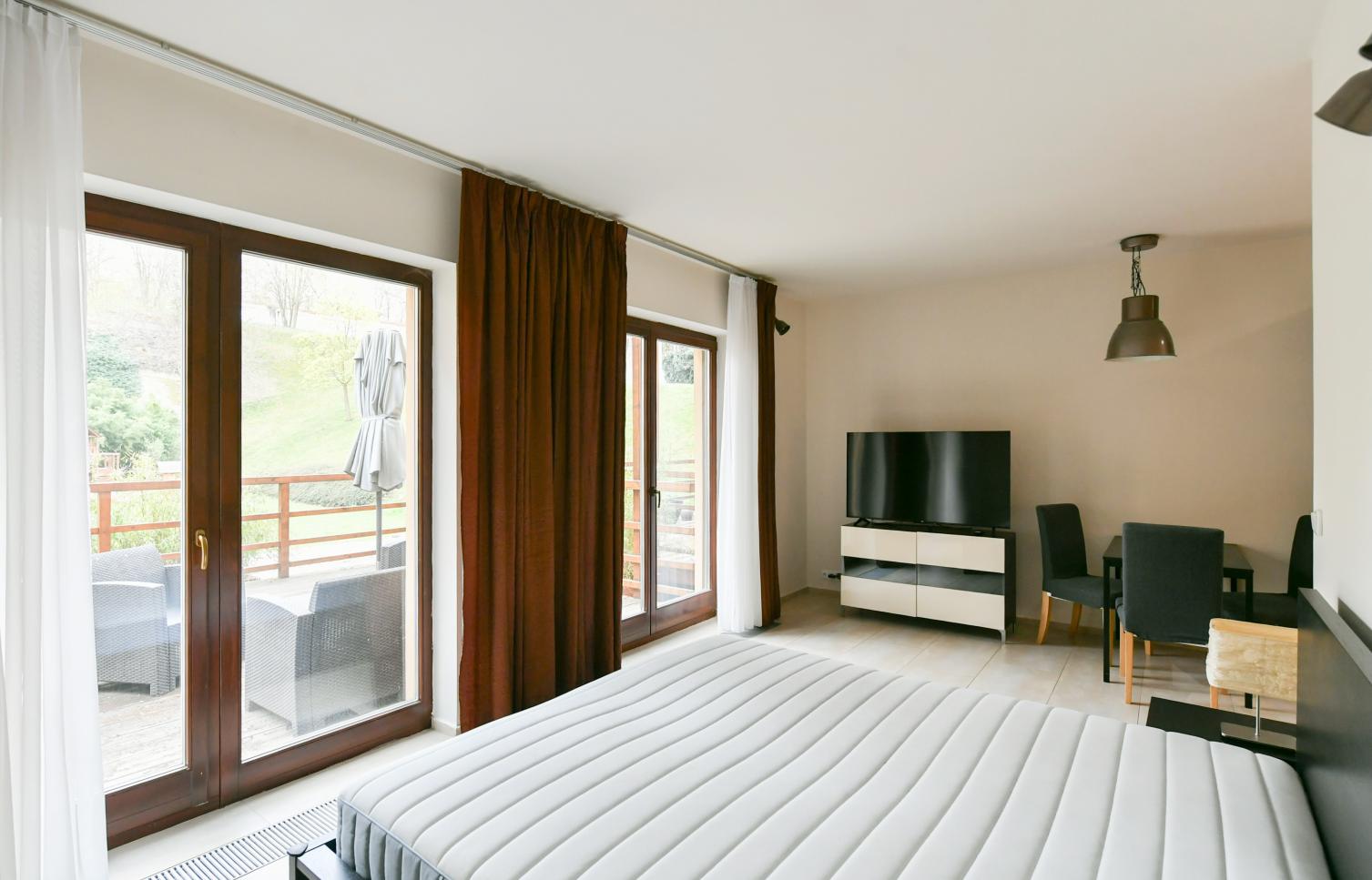 Nájemcům je za příplatek k dispozici parkovací stání v garáži či na pozemku. Dále zde najdete saunu, wellness či posilovnu.