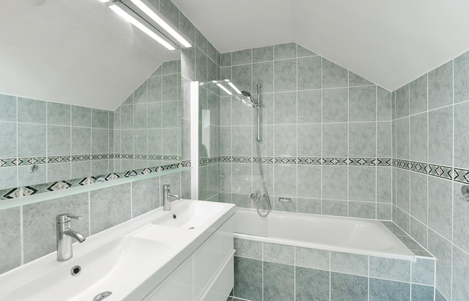 Dům nabízí celkem 4 ložnice a 2 koupelny. V přízemí se nachází plně vybavená kuchyň s jídelním prostorem, obývací pokoj ze vstupem na terasu a zahradu, prádelna, s přístupem na zahradu a vstupní hala. V patře je hlavní ložnice s koupelnou, šatnou a balkonem, další dvě ložnice s vestavěnými skříněmi, dvě samostatné koupelny a toaleta pro hosty.