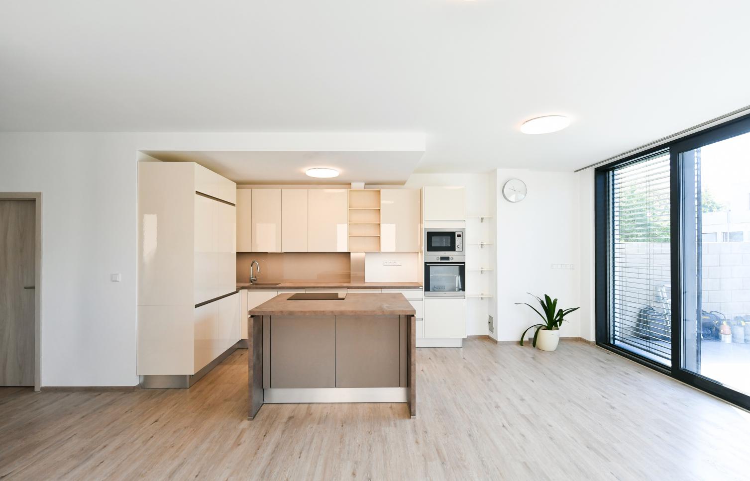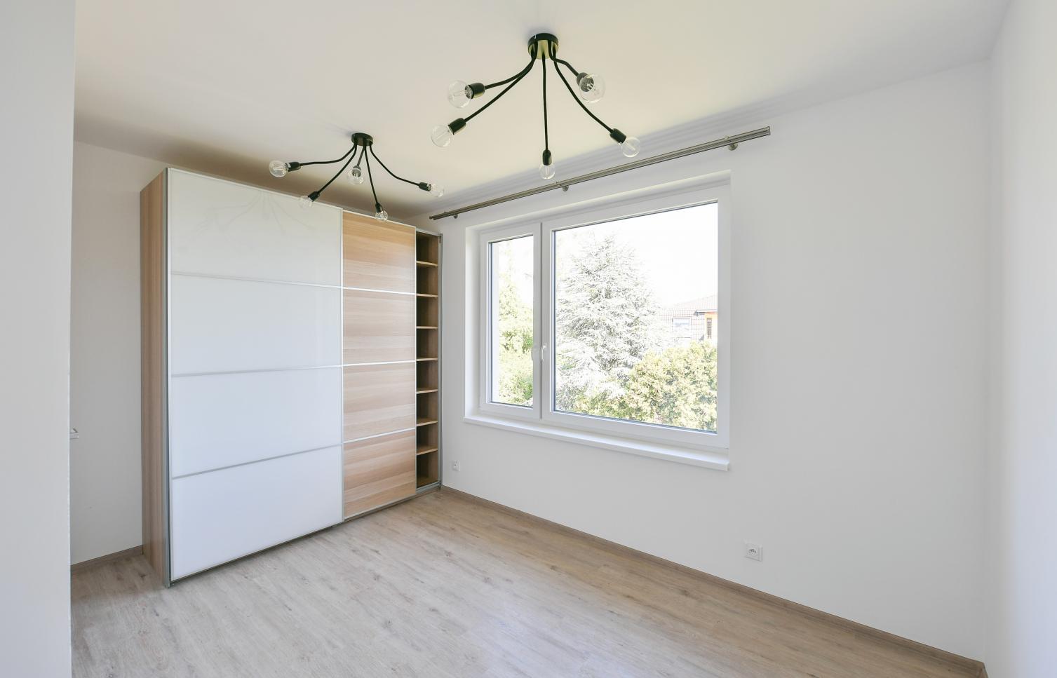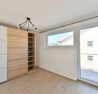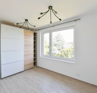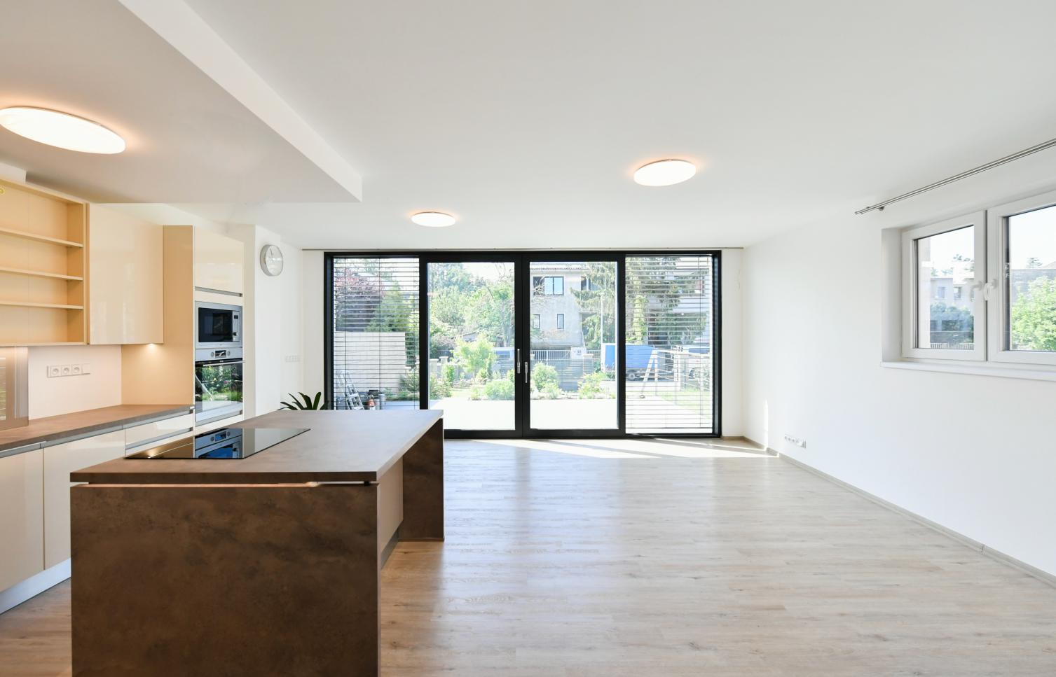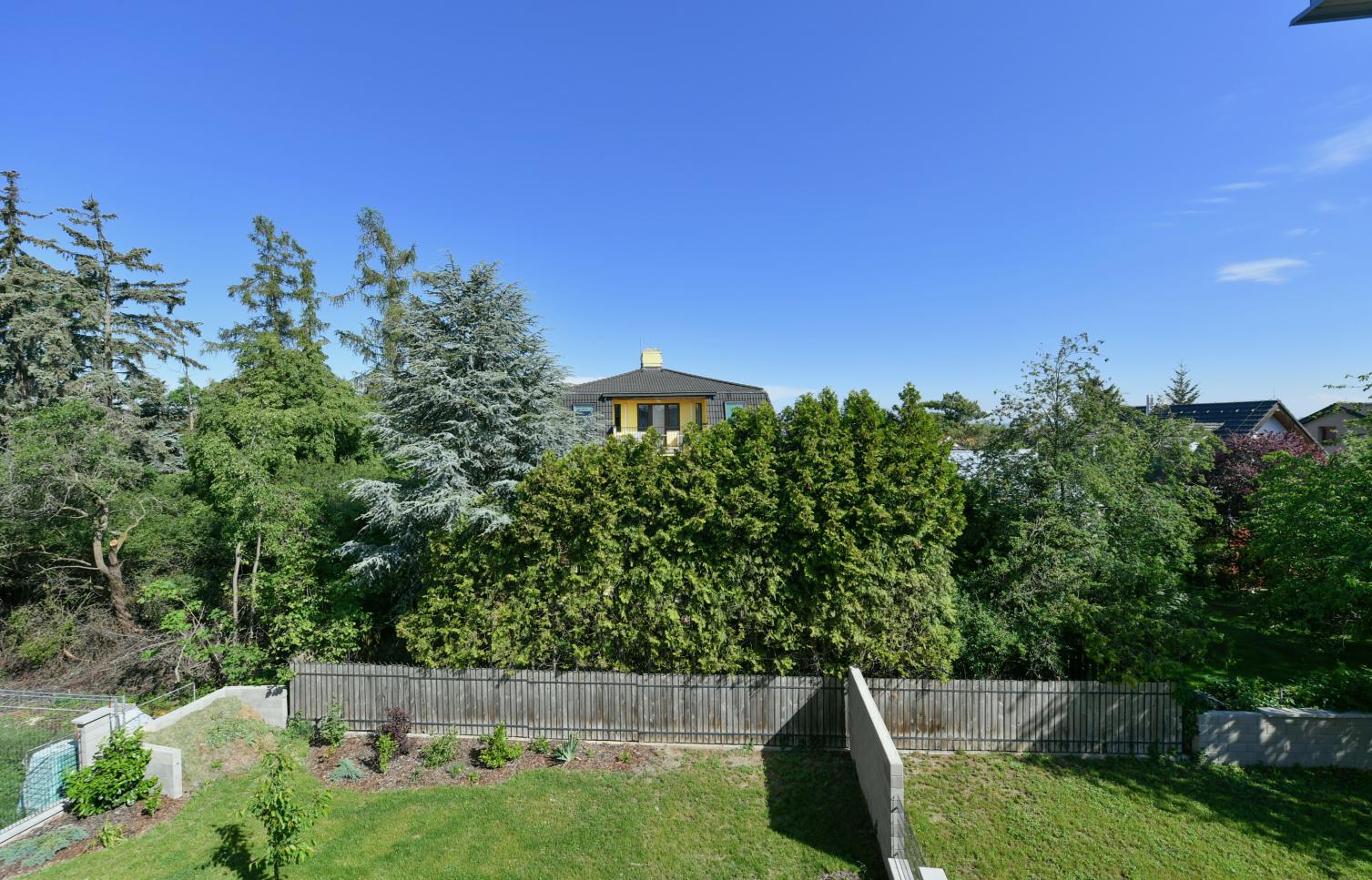 Dispozice: hlavní obytný prostor v přízemí nabízí moderně propojený obývací pokoj s kuchyní / přístup na zahradu, ložnici pro hosty / pracovnu, koupelnu ze sprchovým koutem a toaletu. Prostorná vstupní hala. V patře jsou umístěny 3 ložnice, z nichž jedna z balkonem, dále rodinná koupelna s vanou a sprchovým koutem, oddělená toaleta. Navíc dům nabízí garsonku s vlastním sociálním zařízením a ze vstupem na nově položenou zahradu s okrasnými keři a trávníkem. Velká okna navazují harmonický vztah se zahradou. Celkem dům nabízí 5 ložnic, 3 koupelny. Možnost parkování dvou až tří vozů na pozemku). Orientace domu na jih, minimalisticky pojaté koupelny. Celý dům disponuje množstvím úložných prostor, vestavné skříně jsou v předsíni, chodbě, ložnicích.