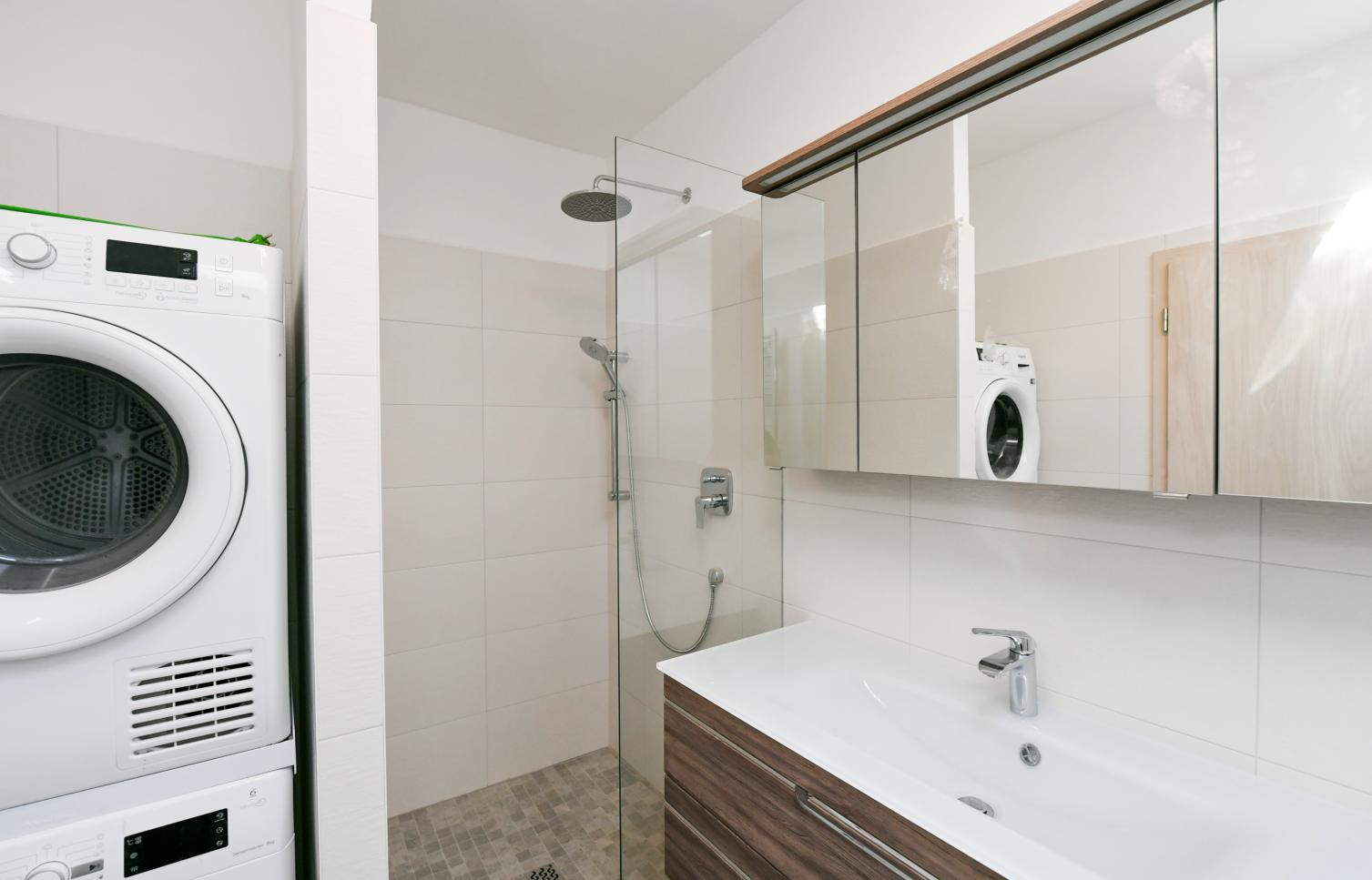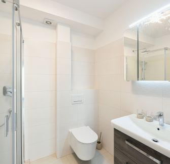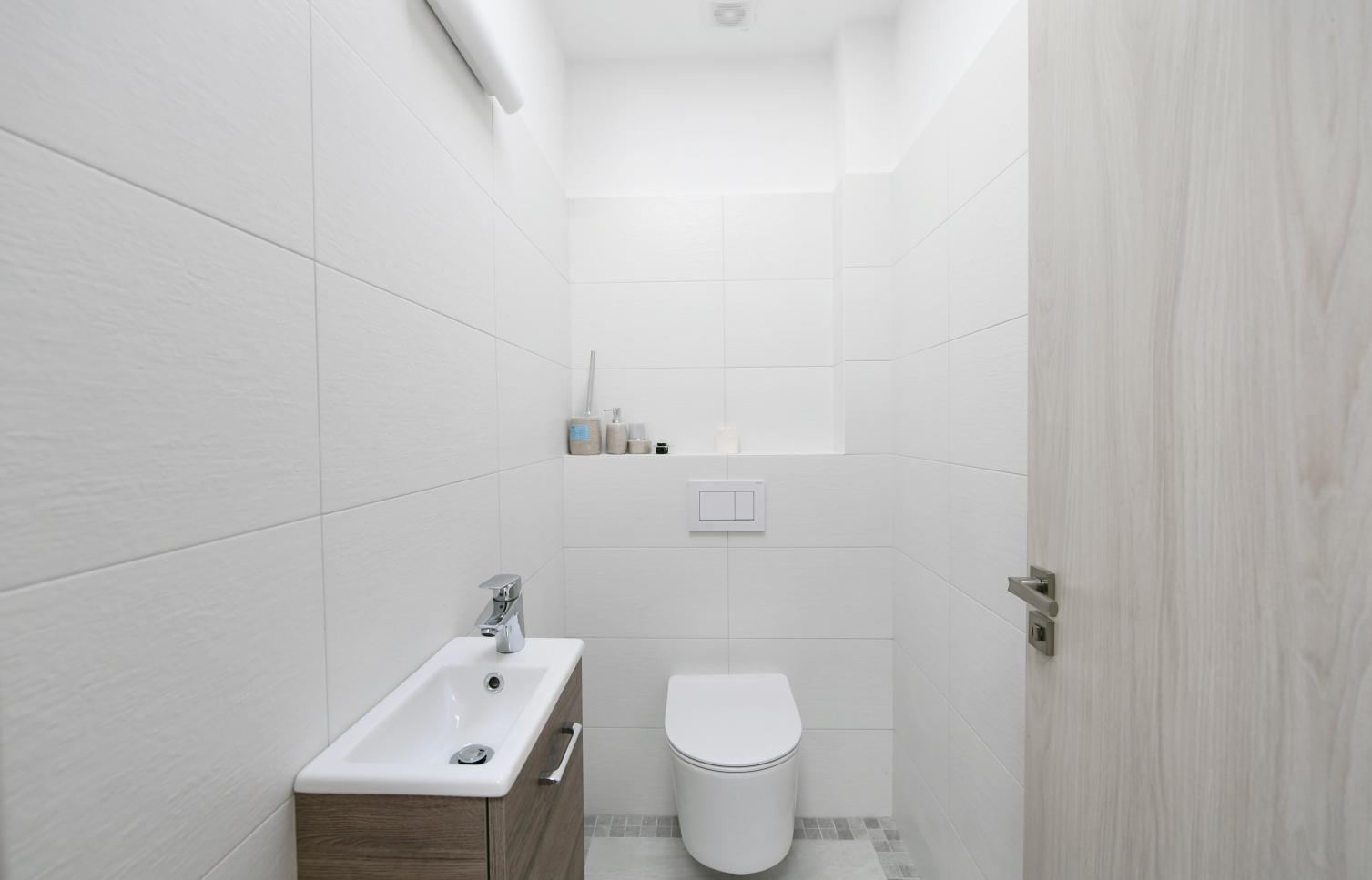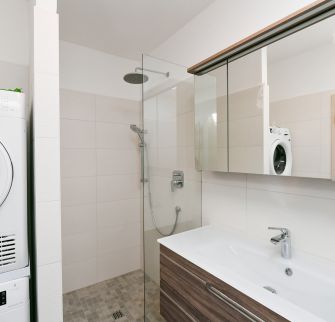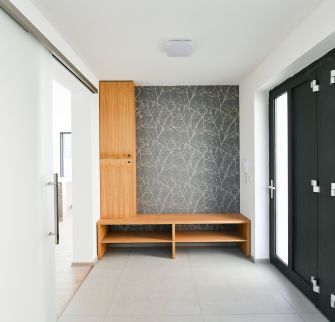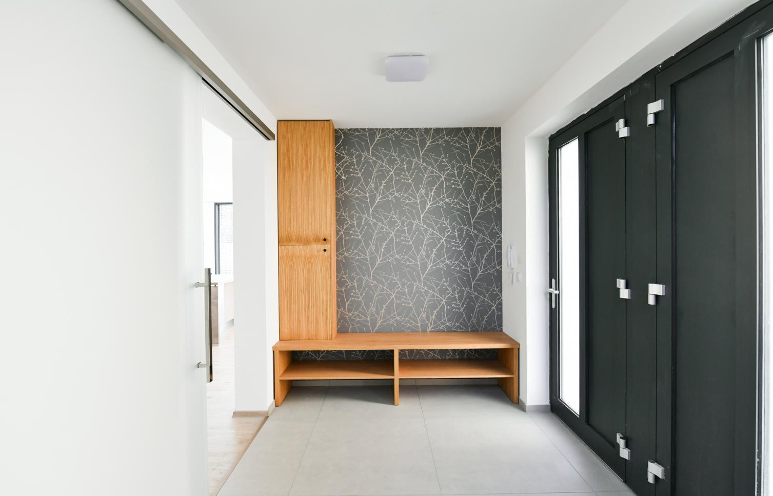 Dispozice: hlavní obytný prostor v přízemí nabízí moderně propojený obývací pokoj s kuchyní / přístup na zahradu, ložnici pro hosty / pracovnu, koupelnu ze sprchovým koutem a toaletu. Prostorná vstupní hala. V patře jsou umístěny 3 ložnice, z nichž jedna z balkonem, dále rodinná koupelna s vanou a sprchovým koutem, oddělená toaleta. Navíc dům nabízí garsonku s vlastním sociálním zařízením a ze vstupem na nově položenou zahradu s okrasnými keři a trávníkem. Velká okna navazují harmonický vztah se zahradou. Celkem dům nabízí 5 ložnic, 3 koupelny. Možnost parkování dvou až tří vozů na pozemku). Orientace domu na jih, minimalisticky pojaté koupelny. Celý dům disponuje množstvím úložných prostor, vestavné skříně jsou v předsíni, chodbě, ložnicích.