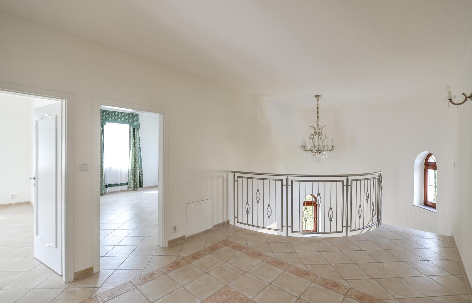 Klimatizace, podlahové topení v celém domě, zabezpečovací zařízení rozdělené na jednotlivé zóny (noční režim atd.) s připojením na pult centrální ochrany. Videotelefon propojen s vchodem a vjezdem do areálu. Automatické zavlažování zahrady. Na zahradě bazén 5 x 3 x 1,5 m, podvodní osvětlení, vyhřívání, zařízení pro plavání proti proudu vody. Integrovaná garáž pro dva vozy - vrata a vjezdová brána na dálkové ovládání. Nádherný výhled na unikátní scenérie Šáreckého údolí, ideální místo pro rodinný život. Nájemné Fixní poplatky za údržbu zahrady a bazénu, vodu a bezpečnostní službu: 12.000 Kč / měsíc. Elektřina a plyn: 15.000 Kč / měsíc. K dispozici od 16.2.2026.
