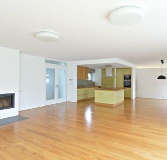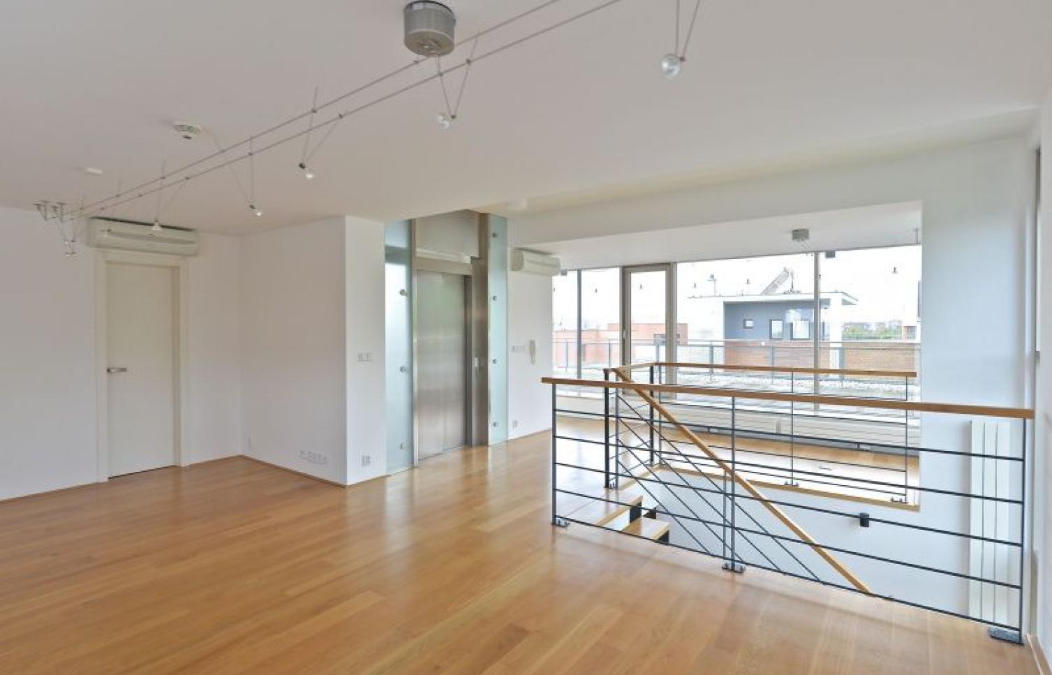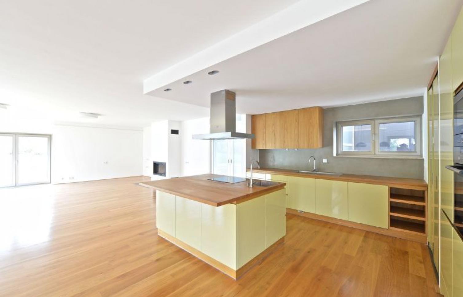 Interiéry jsou vybaveny značkovými designovými prvky, jako jsou interiérové dveře, koupelnové obklady a dlažby, zařizovací předměty a koupelnová topná tělesa. Součástí obytného prostoru jsou šatny a velkorysé úložní prostory. K dalšímu vybavení patří elektrické žaluzie, dubové podlahy, mramorové parapety, alarm, SAT. Garáž pro dva velké vozy. K dispozici od 1.12.2025