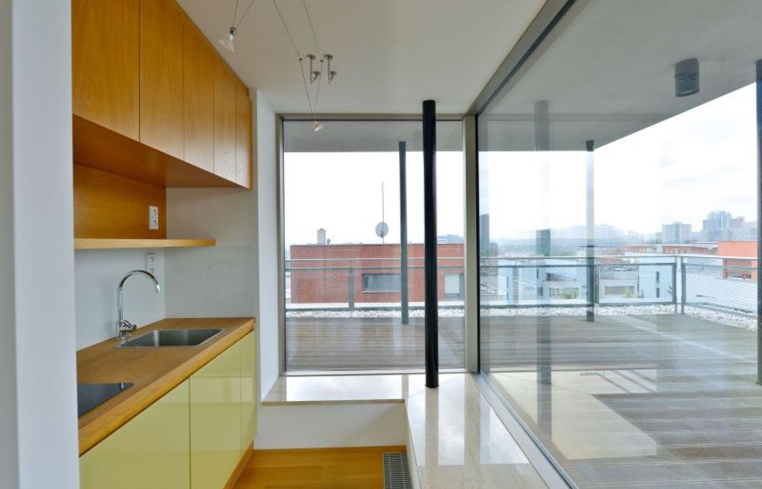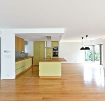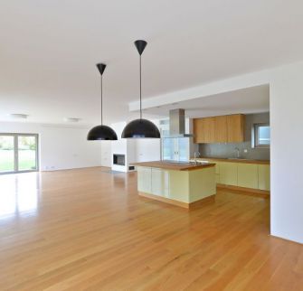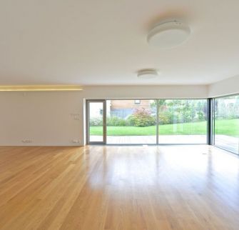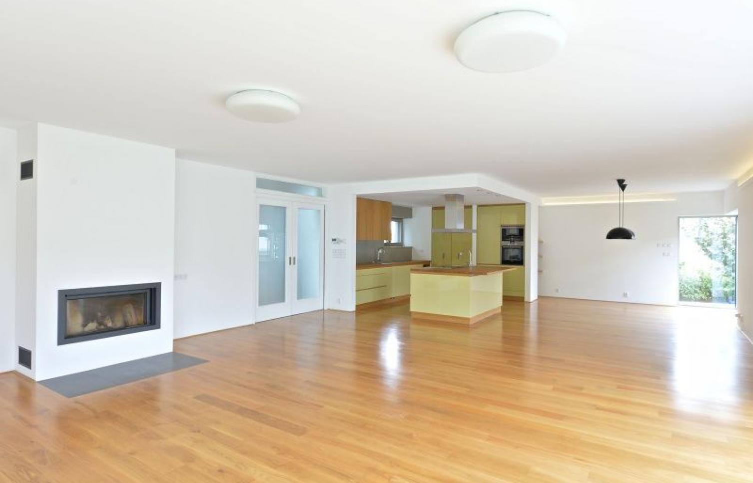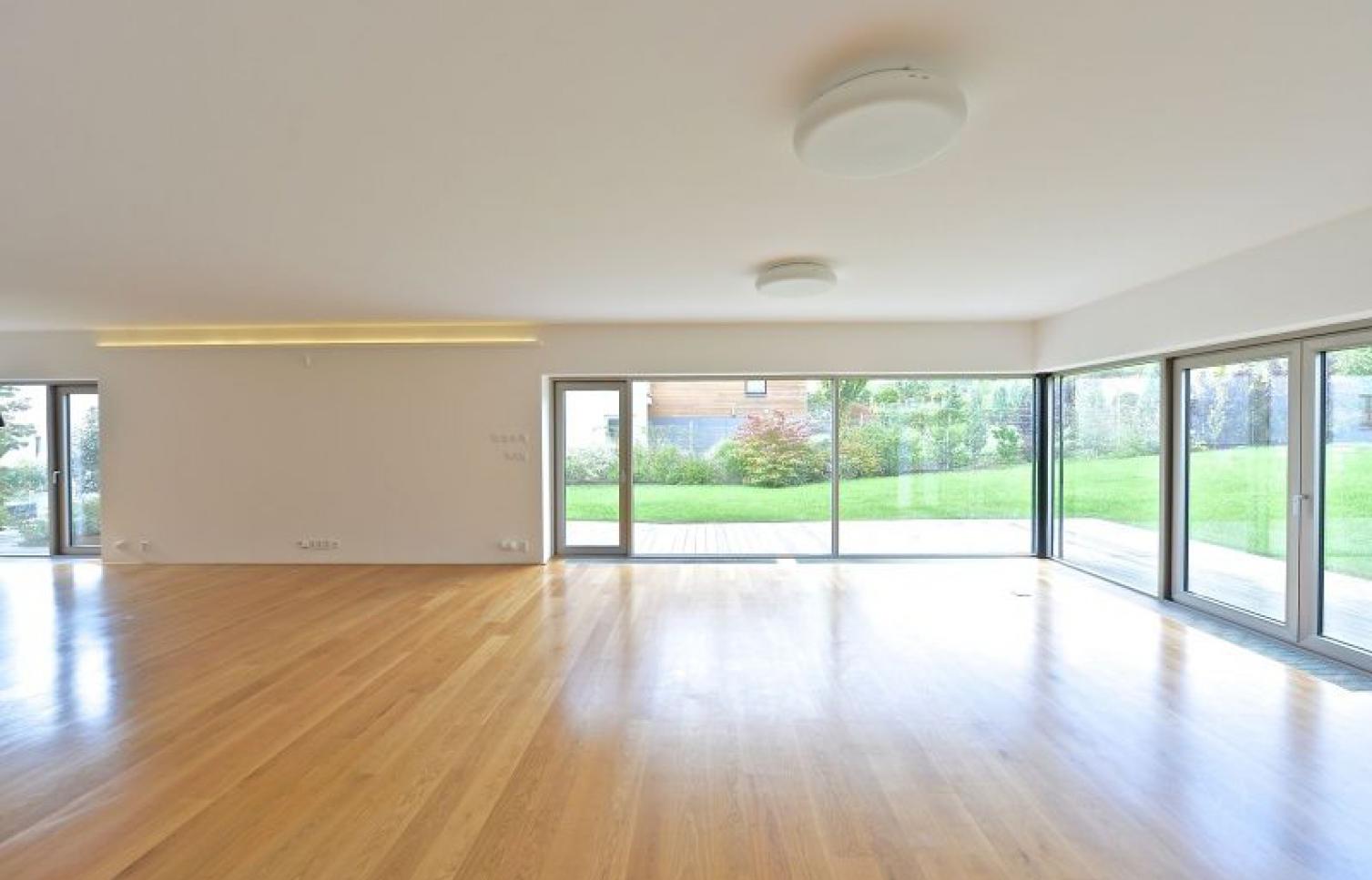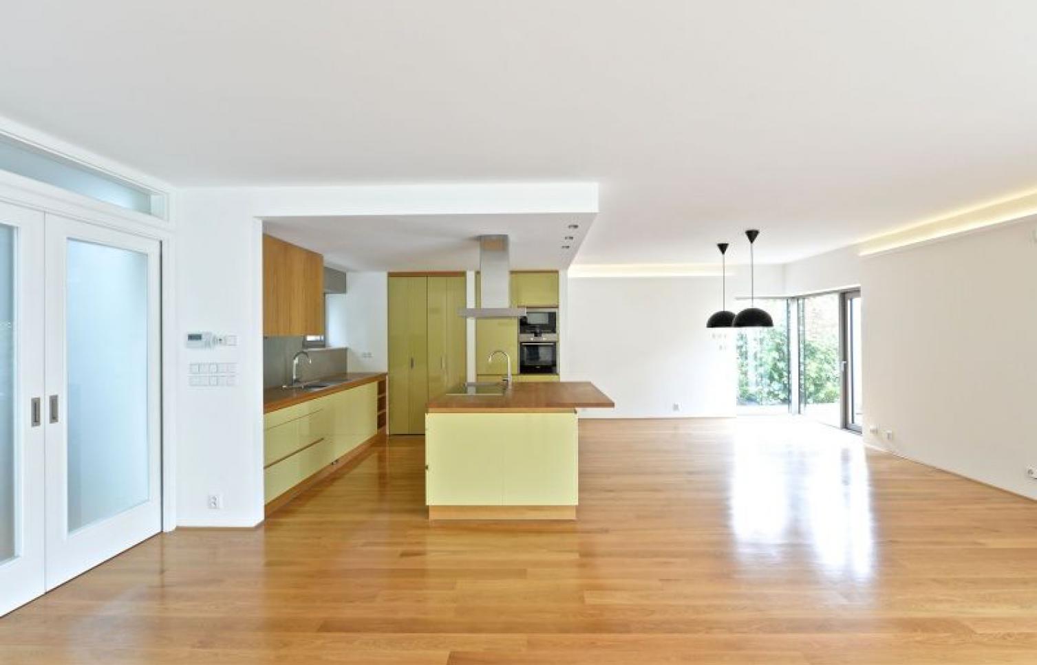 Denní společenskou zónu vily tvoří rozlehlý přízemní otevřený prostor obývacího pokoje s kuchyní, jídelnou a přímým vstupem na profesionálně upravenou zahradu. Celá spodní fasáda domu směrem do zahrady je bohatě prosklena a v letních měsících umožní velkoformátové posuvné dveře propojit interiér s exteriérem velmi intenzivně. Dům nabízí celkem 6 ložnic, 5 koupelen a 2 velké terasy. Poslední patro s otevřenou dispozicí a čajovou kuchyňkou, ze sociálním zázemím, terasou - možno využít jako samostatnou jednotku. V suterénu je prádelna/kotelna, koupelna (sprchový kout, umyvadlo a toaleta), sklep, fitness či skladovací místnost a velká dvougaráž. Celý dům je klimatizován.