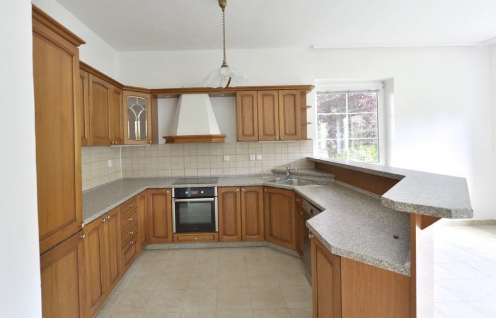 Dům má k dispozici : Obývací pokoj s východem na terasu, 5 ložnic, 5 koupelen, plně vybavenou kuchyni s jídelním koutem. Vestavěné skříně, v suterénu 3 velké pokoje - možnost ubytování pro návštěvy, garáž pro 2 auta. Celková plocha: 300 m2. Plocha zahrady: 600 m2