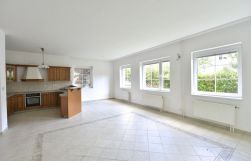 Vybavení: prádelna - pračka, sušička, dálkové ovládání garážových vrat + hlavní brána, bezpečnostní systém/alarm, TV, SAT, ADSL Internet. Podlahové krytiny: parkety + dlažba