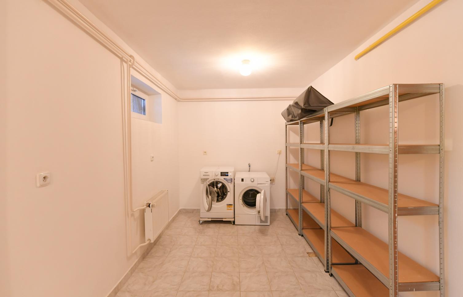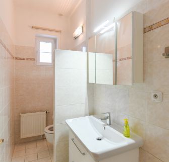 Vybavení: prádelna - pračka, sušička, sušička, dálkové ovládání garážových vrat + hlavní brána, bezpečnostní systém/alarm, TV, SAT, ADSL Internet. Podlahové krytiny: parkety + dlažba.