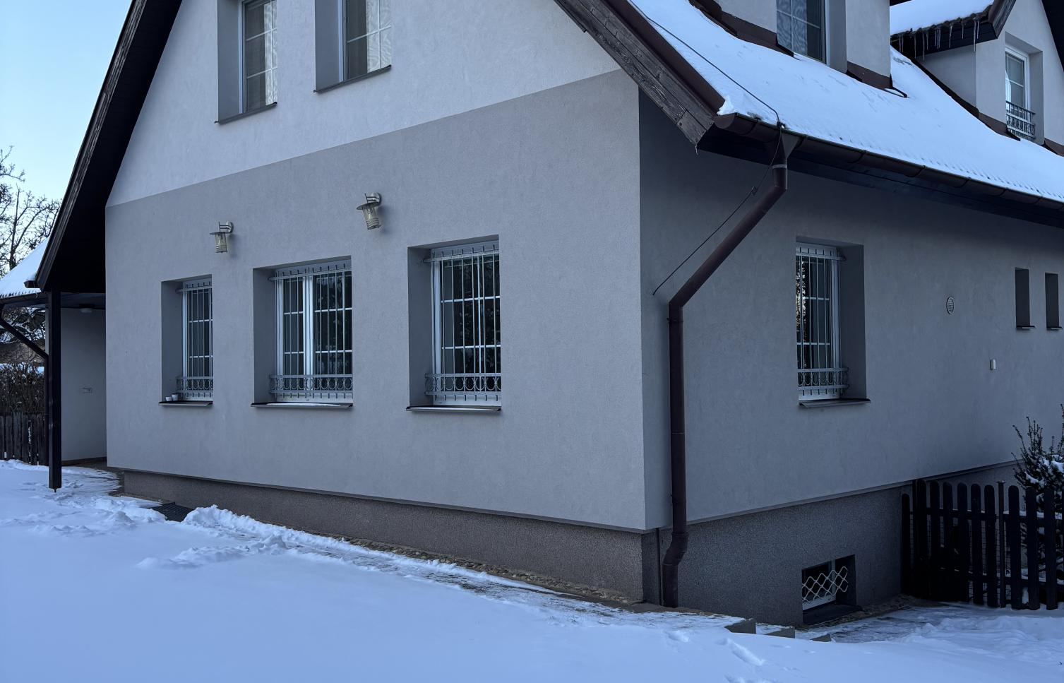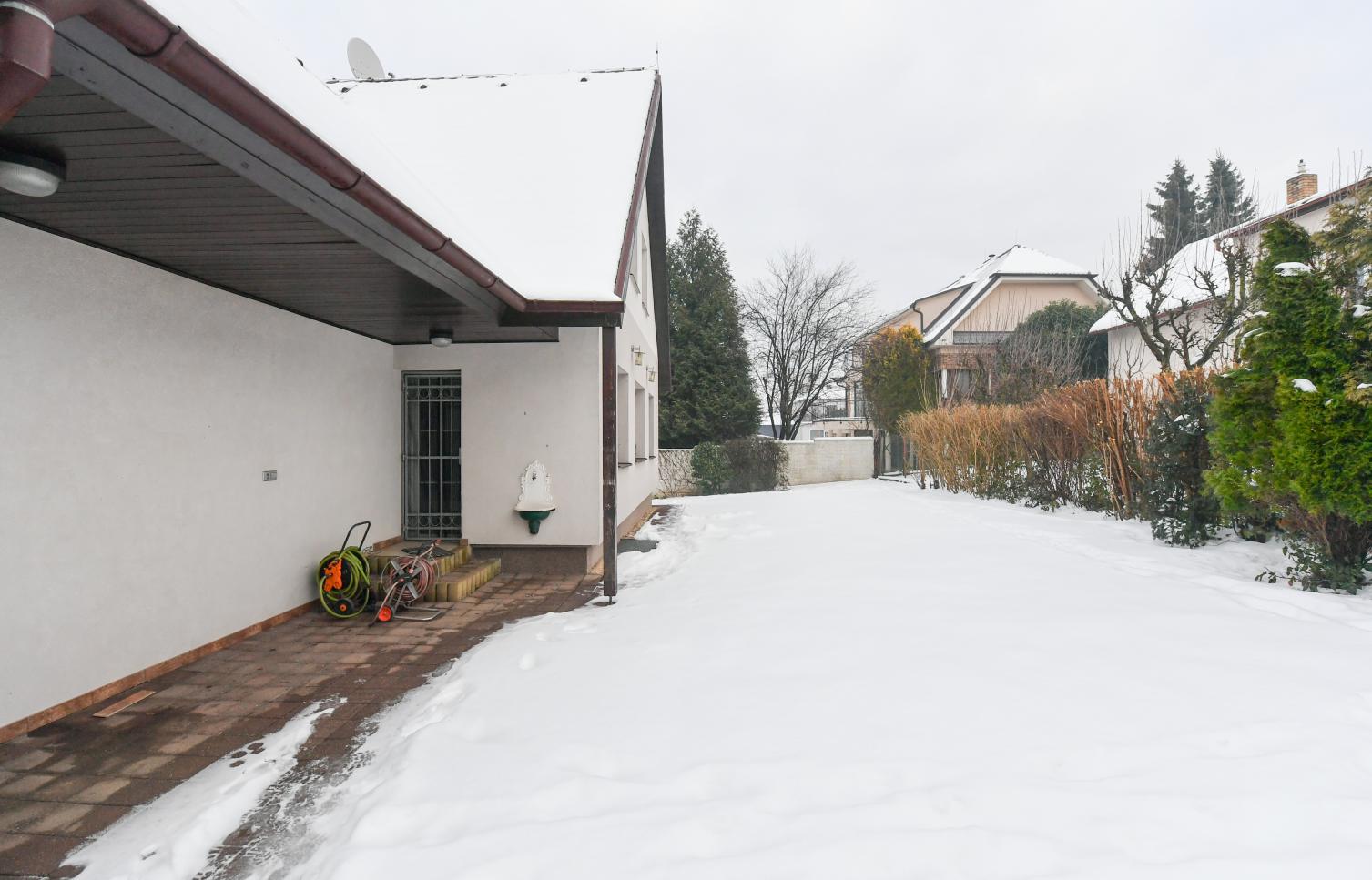 Dům má k dispozici : Obývací pokoj s východem na terasu, 5 ložnic, 5 koupelen, plně vybavenou kuchyni s jídelním koutem. Vestavěné skříně, v suterénu 3 velké pokoje - možnost ubytování pro návštěvy, garáž pro 2 auta. Celková plocha: 300 m2. Plocha zahrady: 600 m2. Dům je zateplen.