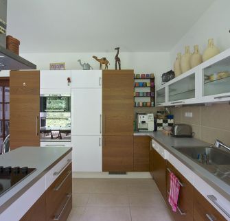 Kuchyně je vybavena všemi potřebnými spotřebiči (Bosch), v domě je alarm, SAT, krb v obývacím pokoji, vestavěné skříně, vinný sklep, přístřešek pro zahradnické náčiní. K dispozici je garáž a 2 parkovací místa na pozemku. Oblast je ceněná pro zeleň a jezero používané pro bruslení a hokej, výborné sportovní možnosti. Snadná dostupnost do Prahy, (metro Chodov), centrum města 10 minut autem, v rychlém dosahu mezinárodních škol EISP, PBS, a PORG. Dům je v tiché ulici s výhledem a krásnou dekorativní zahradou.