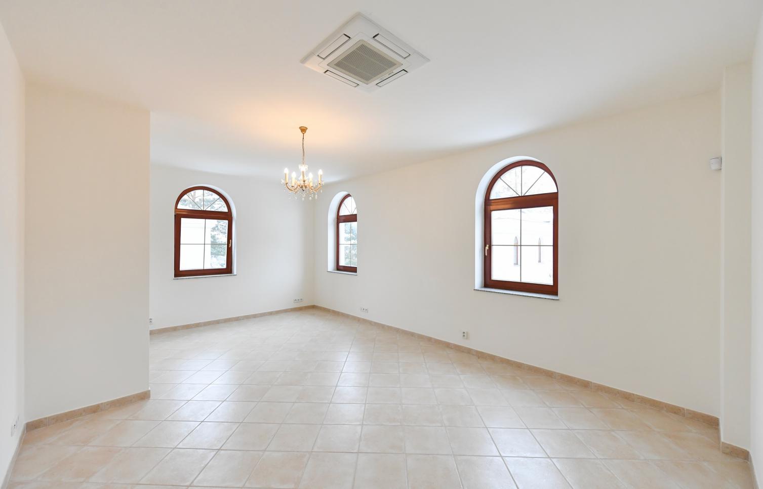 Klimatizace, podlahové topení v celém domě, zabezpečovací zařízení rozdělené na jednotlivé zóny (noční režim atd.) s připojením na pult centrální ochrany. Videotelefon propojen s vchodem a vjezdem do areálu. Automatické zavlažování zahrady. Na zahradě bazén 5 x 3 x 1,5 m, podvodní osvětlení, vyhřívání, zařízení pro plavání proti proudu vody. Integrovaná garáž pro dva vozy - vrata a vjezdová brána na dálkové ovládání. Nádherný výhled na unikátní scenérie Šáreckého údolí, ideální místo pro rodinný život. Nájemné Fixní poplatky za údržbu zahrady a bazénu, vodu a bezpečnostní službu: 12.000 Kč / měsíc. Elektřina a plyn: 15.000 Kč / měsíc. K dispozici od 16.2.2026.