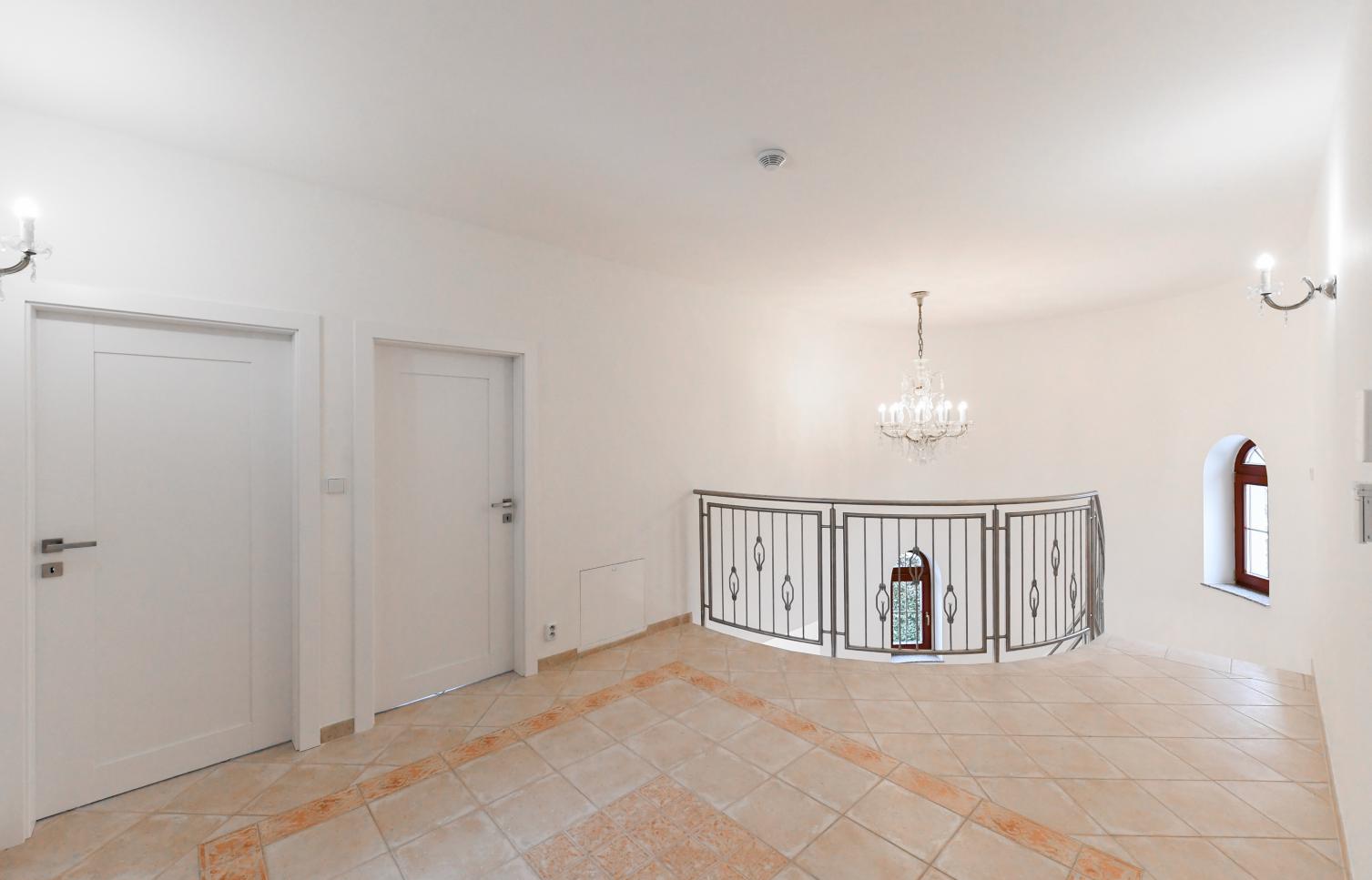 Nemovitost má celkovou plochu 243 m2, 4 ložnice, 3 koupelny. V hlavní úrovni dům nabízí velkoryse řešený obývací prostor s terasou a krbem, jídelnu, plně vybavenou kuchyň. Součástí hlavního obývacího prostoru je hala ze šatnou, prádelna s pračkou a sušičkou, spíž i šatna, samostatná toaleta. V patře jsou čtyři ložnice - dvě z nich s vlastními koupelnami (vana/bidet/ WC), třetí koupelna (sprcha/bidet), samostatná toaleta a galerie. Kuchyň/vybavení: sklo keramická plotna, horkovzdušná trouba, myčka nádobí, lednice s mrazákem, odsávač par. Satelitní - anténní rozvod do všech obytných místností včetně kuchyně a na terasu.