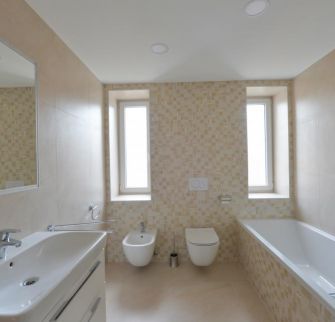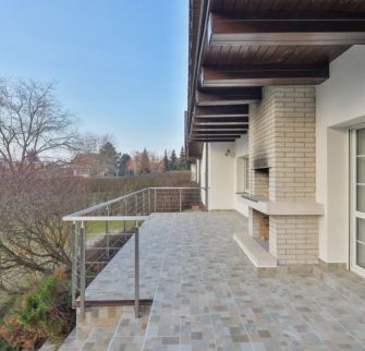 Nově zrenovovaná rodinná vila k pronájmu má celkem 5 ložnic a 4 koupelny. V přízemí domu se nachází hala s vestavěnými skříněmi, prostorný obývací pokoj s krbem (53 m2) a vstupem na velkou terasu; plně vybavena nová kuchyně, dále koupelna s vanou a bidetem a jedna ložnice. Další 4 ložnice, (2x vestavěná skříň), koupelna a zařízena šatna jsou umístěny v prvním patře. V suterénu domu je pokoj pro hosty, hobby místnost / fitness, sauna, koupelna se sprchou, prádelna, technická místnost, garáž. Velká okrasná zahrada s automatickým zavlažovacím systémem. Podlahy: v pokojích parkety a v ostatních prostorách dlažba. Vytápění: elektrické. Vila je součástí dobře udržovaného soukromého rezidenčního areálu se společnou zahradou, bazénem, posilovnou a saunou. 2 x garáž.