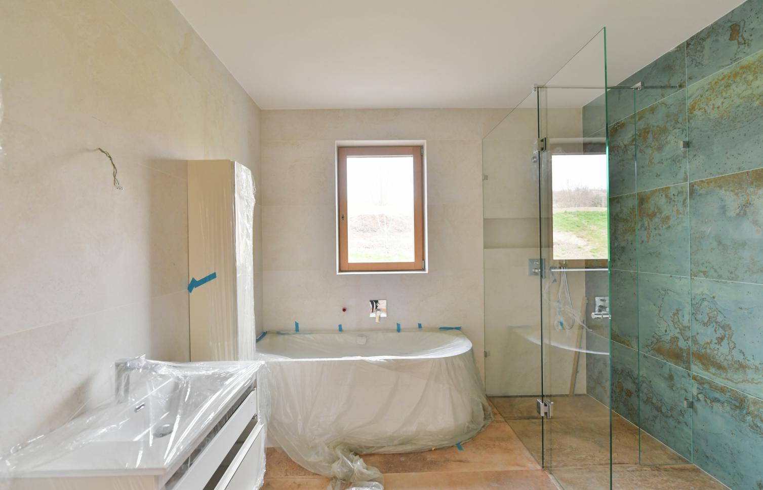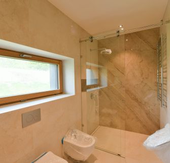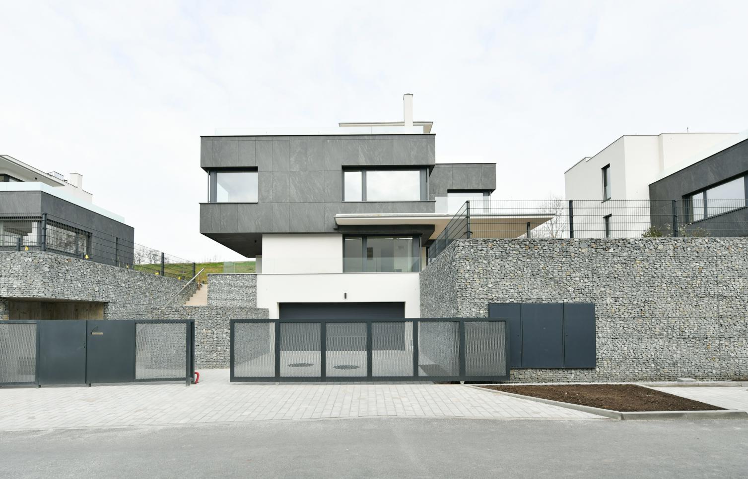Kvalitní dům v nízkoenergetickém standardu nabízí 6 ložnic a 4 koupelny. V přízemí domu se nachází vstupní hala, prostorný světlý obývací pokoj, orientovaný na jih, (moderní krb), vstup na terasu, místnost, kterou lze využít jako pracovnu / pokoj pro hosty, dále je zde koupelna ze sprchovým koutem, samostatná toaleta. Moderní kuchyňská linka vybavena všemi potřebnými spotřebiči: sporák s keramickou indukční deskou, velká lednice, myčka, el. trouba, mikrovlnka. První patro tvoří čtyři ložnice, (z nichž jedna s přístupem na balkon), koupelna s vanou, bidetem a toaletou, další koupelna ze sprchovým koutem, toaletou a bidetem. Druhé patro nabízí malou galerii a ložnici s krásnými výhledy a ze vstupem na terasu; koupelna se sprchovým koutem a toaletou. V suterénu ještě dvě místnosti, technická místnost s tepelným čerpadlem a přípravou na pračku s sušičku. Dále je zde sauna se sprchou. Garáž pro 2 vozy.
