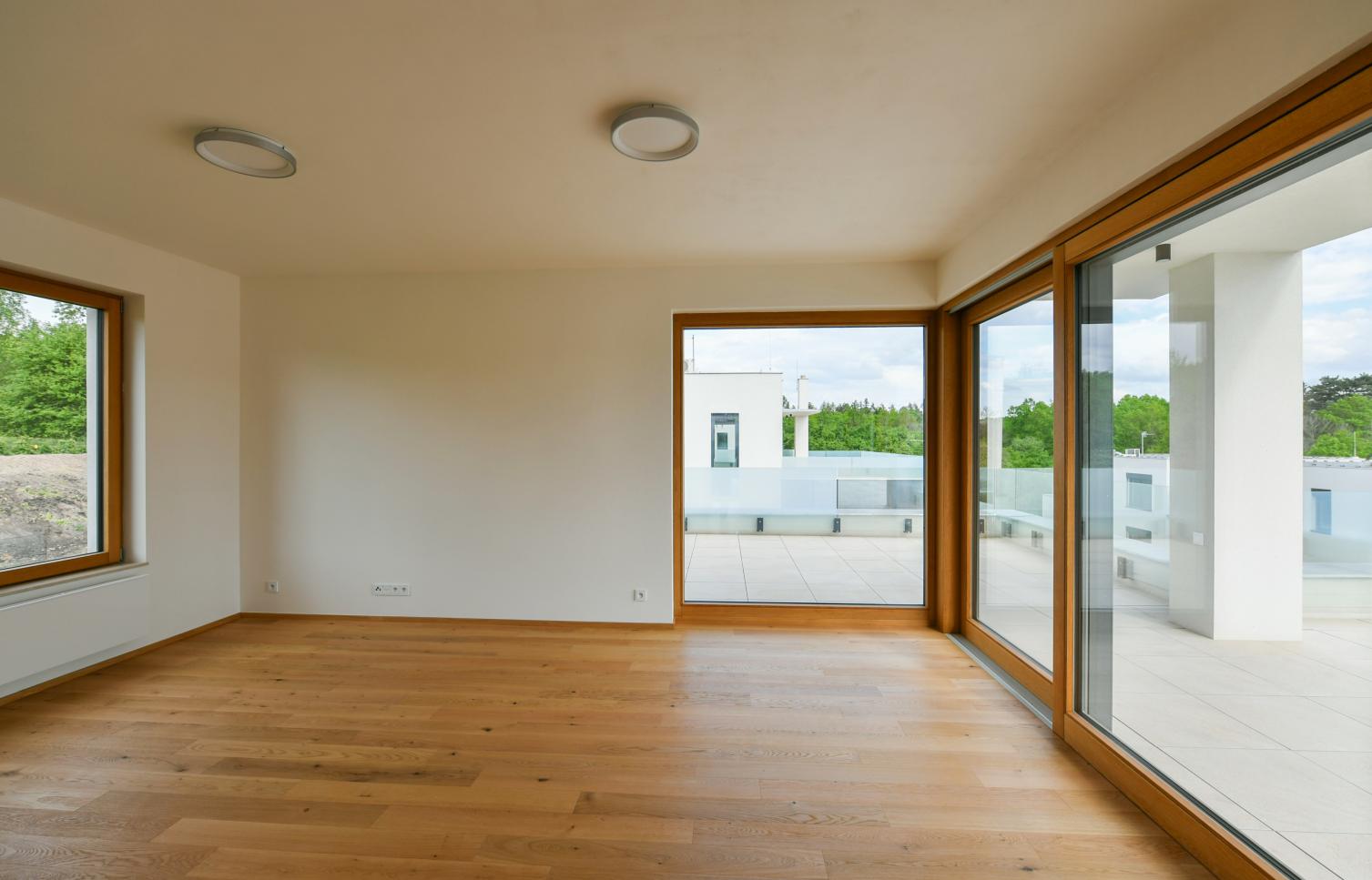Nabízíme k pronájmu moderní nově postavený samostatný rodinný dům na pomezí městské části Motol / Řepy. Klidná lokalita na kraji udržovaného lesoparku umožňuje těsný kontakt s přírodou a zároveň dosah veškerých služeb. Supermarkety i velké nákupní centrum v krátké dojezdové vzdálenosti. V blízkosti projektu bylo v květnu tohoto roku otevřeno sportovní centrum, které nabízí velké množství sportovních aktivit, včetně zázemí nejmodernějšího plaveckého bazénu a mnoha saun. Kus přírody v Praze s obrovským množstvím báječných dřevěných prolézaček, rozhlednou s tobogánem a BMX dráhou. Rezidenční čtvrť U Lesoparku je situována jen pár minut chůze od zastávek tramvaje a autobusu, které Vás dopraví za 15 minut do centra města. Místo je svou polohou také ideální pro časté cesty na letiště.